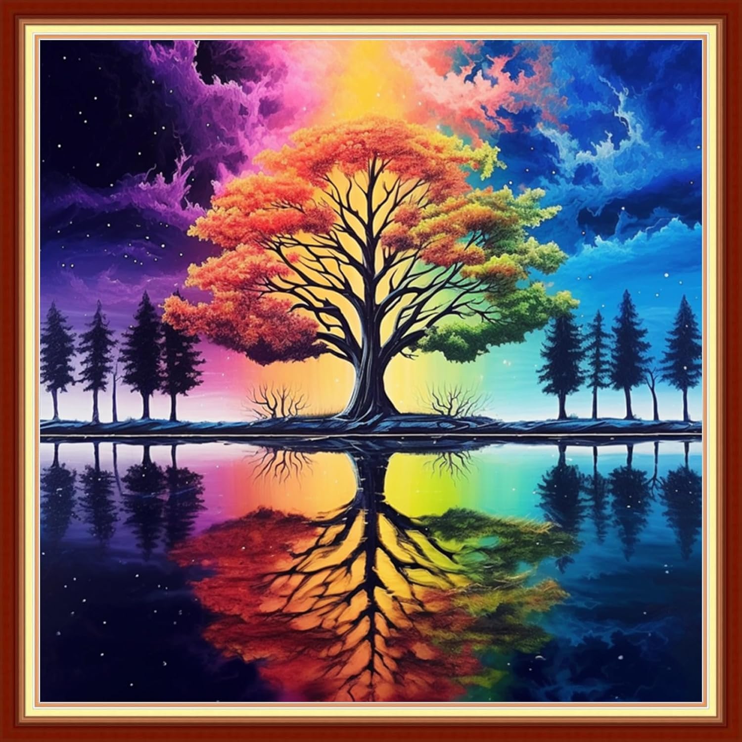 Artvxeay Cross Stitch Kits Stamped Full Range of Embroidery Kits for Beginners Adults 11CT Pattern Stitch Embroidery Kits Needlepoint Kits DIY - (Colorful Tree 18x18 inch)