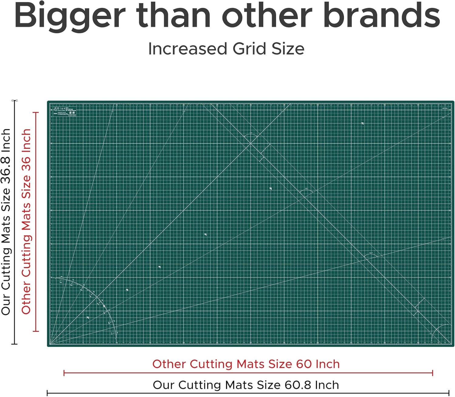 - SELF-HEALING - The self healing cutting mat 60x36 INCHES consists of 5 layers of different PVC materials. When an incision is made, the top layers of the self healing mat contract together to hide the cut and keep the surface flat.