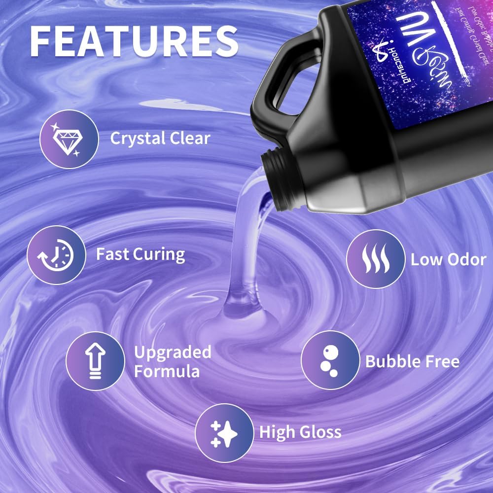 - Less Bubble & Low Odor: Made by upgraded formula, this UV resin is low odor and has less bubble, helping you create more transparent and yellow-resistant UV resin crafts. With crystal clear UV resin, your DIY craft will be more attractive and long-lasting