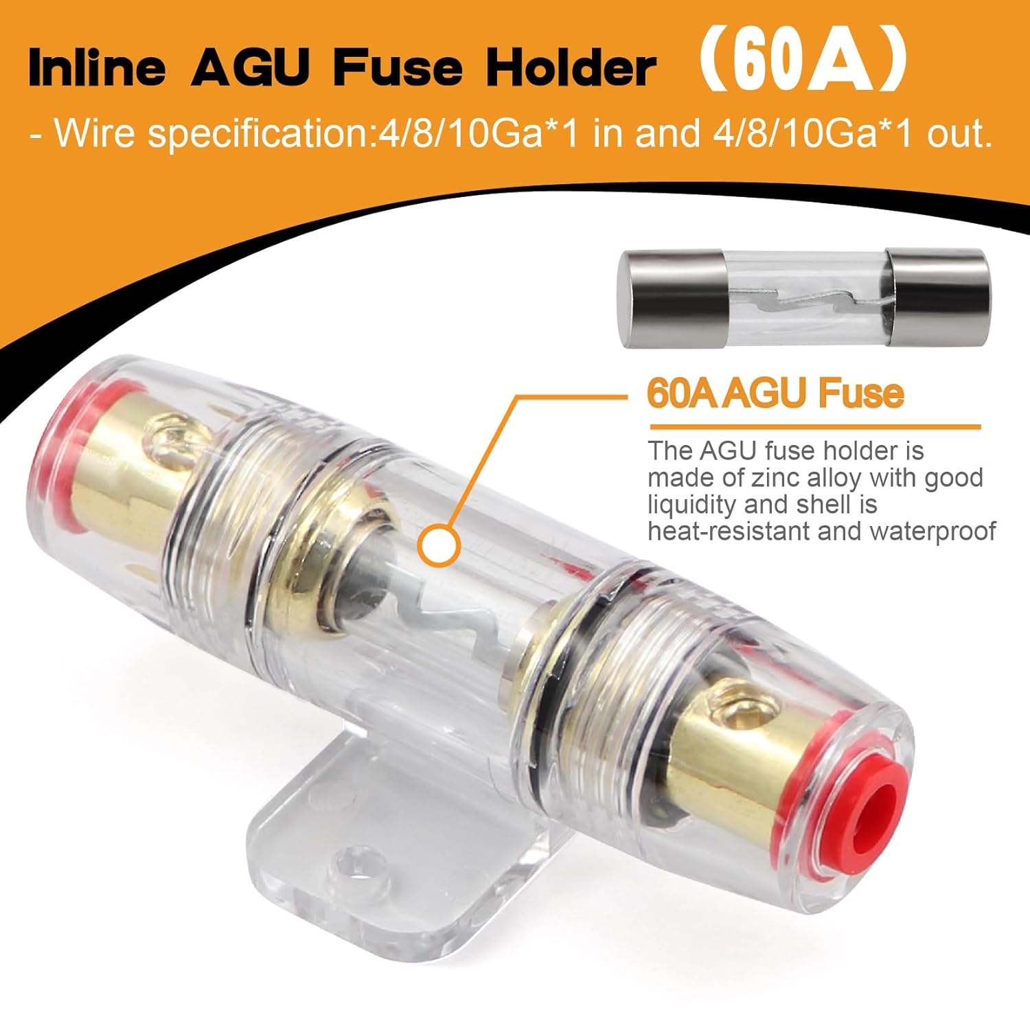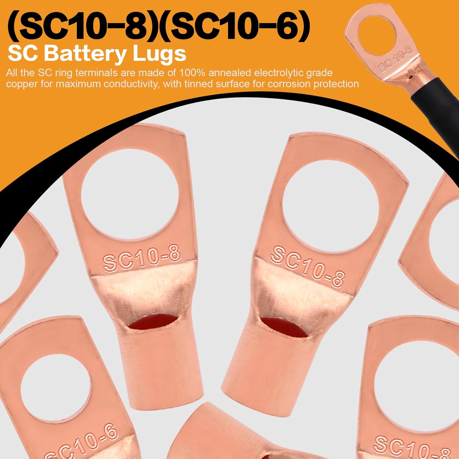 - Package included:100FT 8 Gauge Wire Copper Clad Aluminum CCA (50ft Each for Black and Red), 10PCS AWG8-5/16(SC10-8) lugs,10PCS AWG8-1/4(SC10-6) lugs ,20pcs Heat Shrink Tubing,60A Fuse Holder