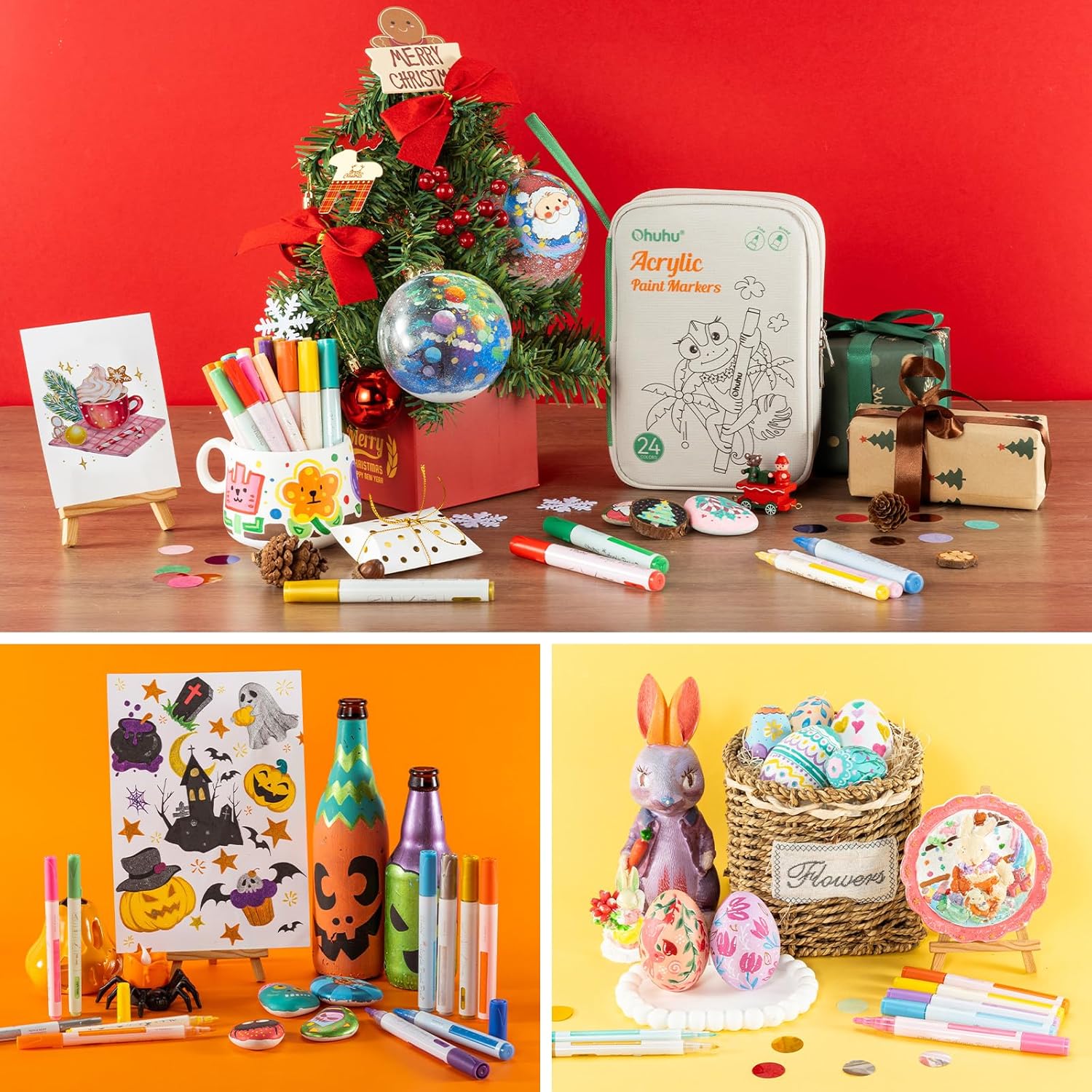 - VIBRANT, COORDINATED COLORS: Ohuhu acrylic paint pens set includes 24 fine-tip and 24 round-tip markers, with both sets featuring the same 24 vibrant colors. Perfect for illustrators, crafters, and DIY projects, this set brings your ideas to life with rich, consistent hues.