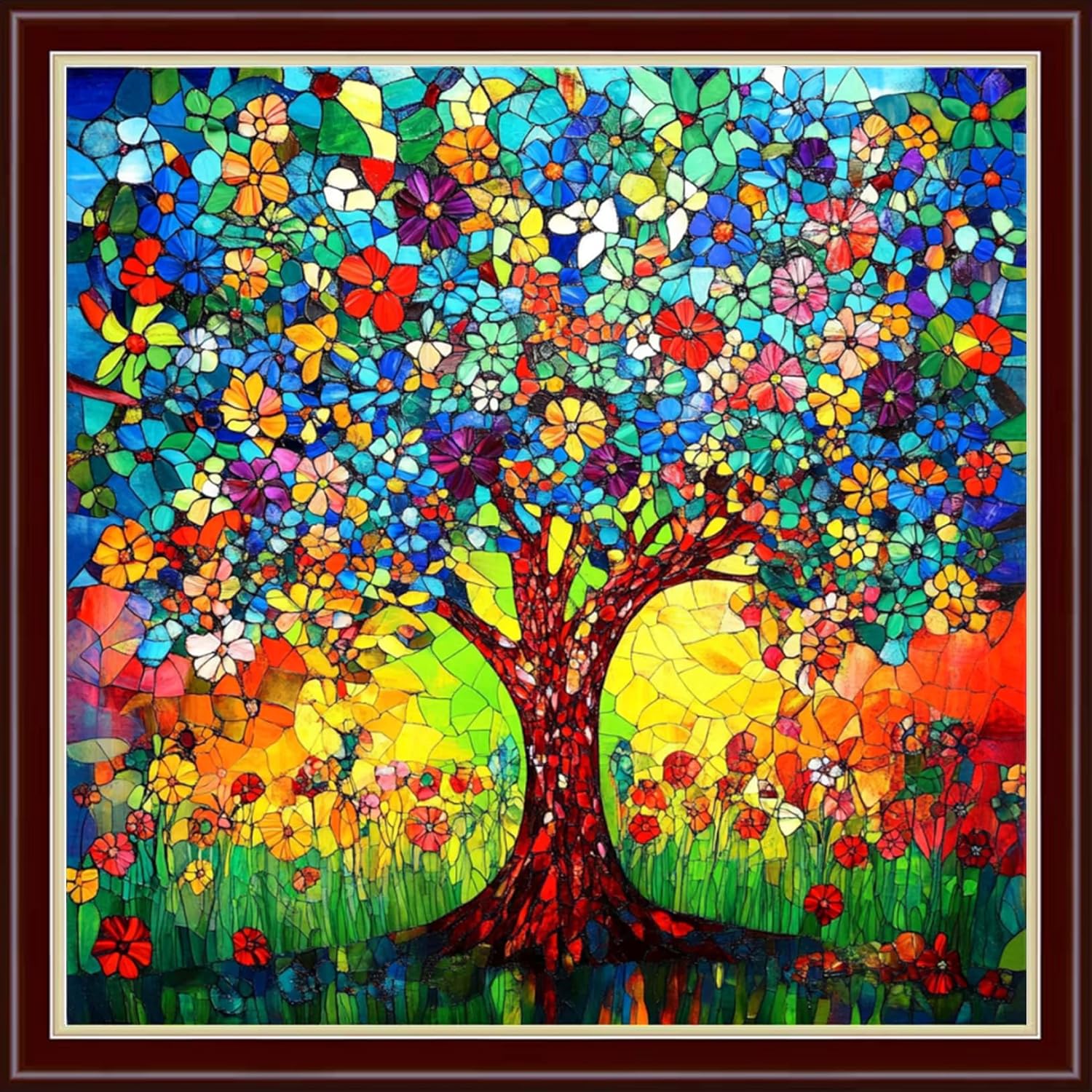 Dimensean Stamped Cross Stitch Kits Full Range of Embroidery Patterns Starter Kits for Beginners Adult or Kids DIY Cross Stitches Needlepoint Kits 11CT-Colorful Tree of Life 18x18 inch