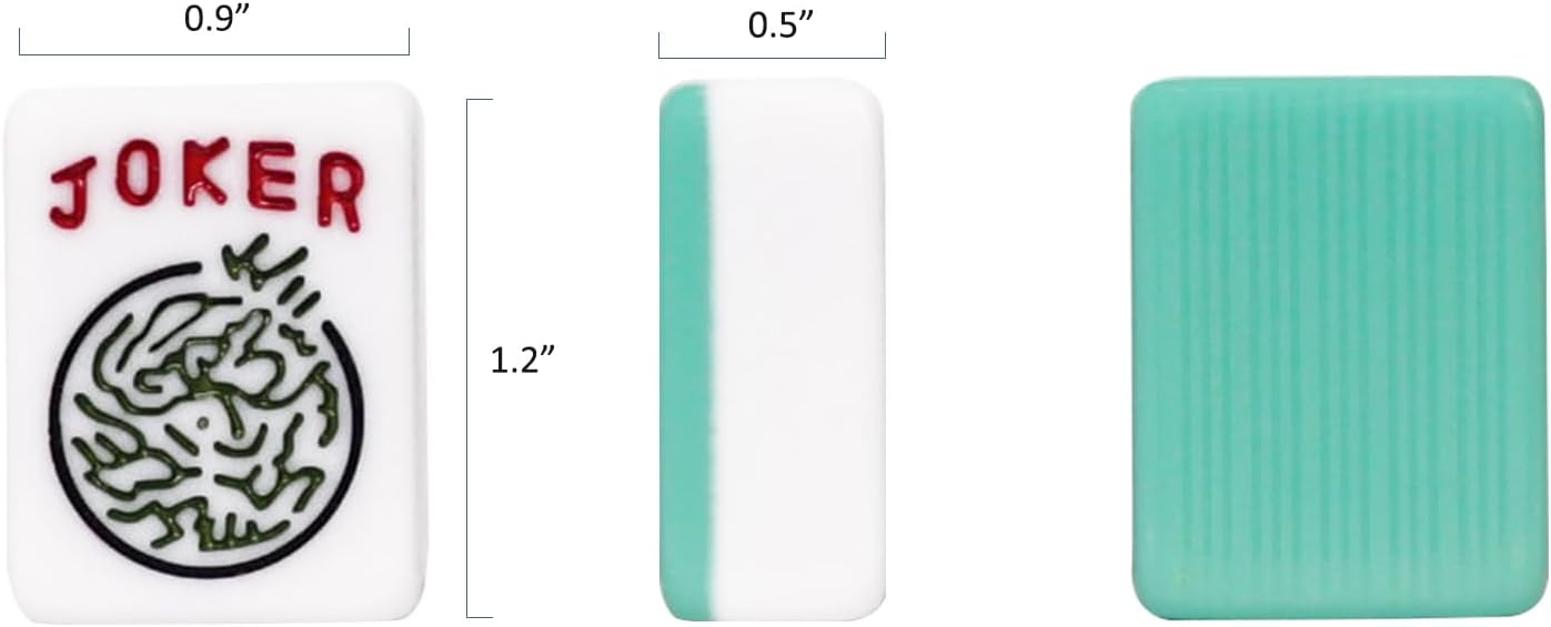 - 166 SCRATCH-RESISTANT TILES: The complete mahjong set includes 166 light green tiles๏ผ36 Dots, 36 Bams, 36 Cracks, 12 Dragons, 16 Winds, 16 Flowers, 10 Jokers, and 4 Blank Spares). Each tile measures 1.2" ร 0.9" ร 0.5". Additionally, two tile trays with lids are provided for convenient storage.