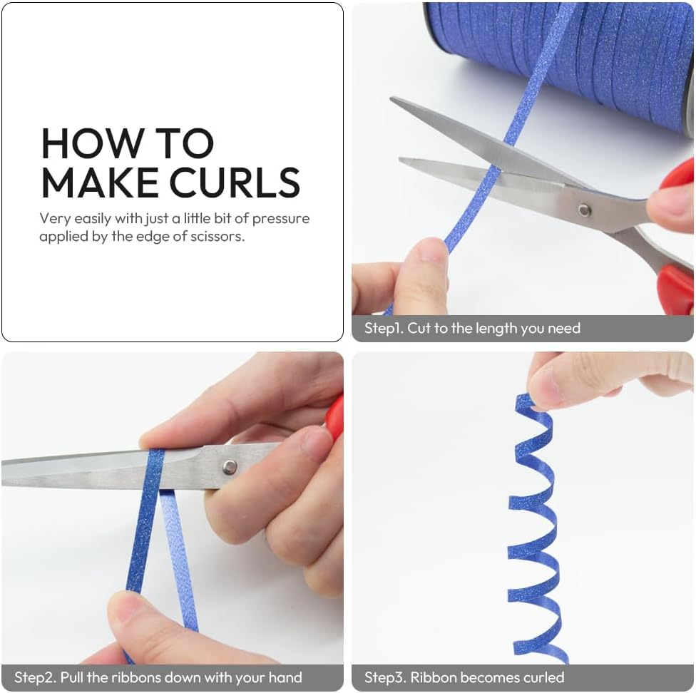 - 【Extra-Long Roll Glitter Curling Ribbon】 Our premium curling ribbon comes in a generous 1/5" x 500 yards roll, providing ample length for any project or occasion. Perfect for gift wrapping, christmas, balloons, florist, flowers decorations.