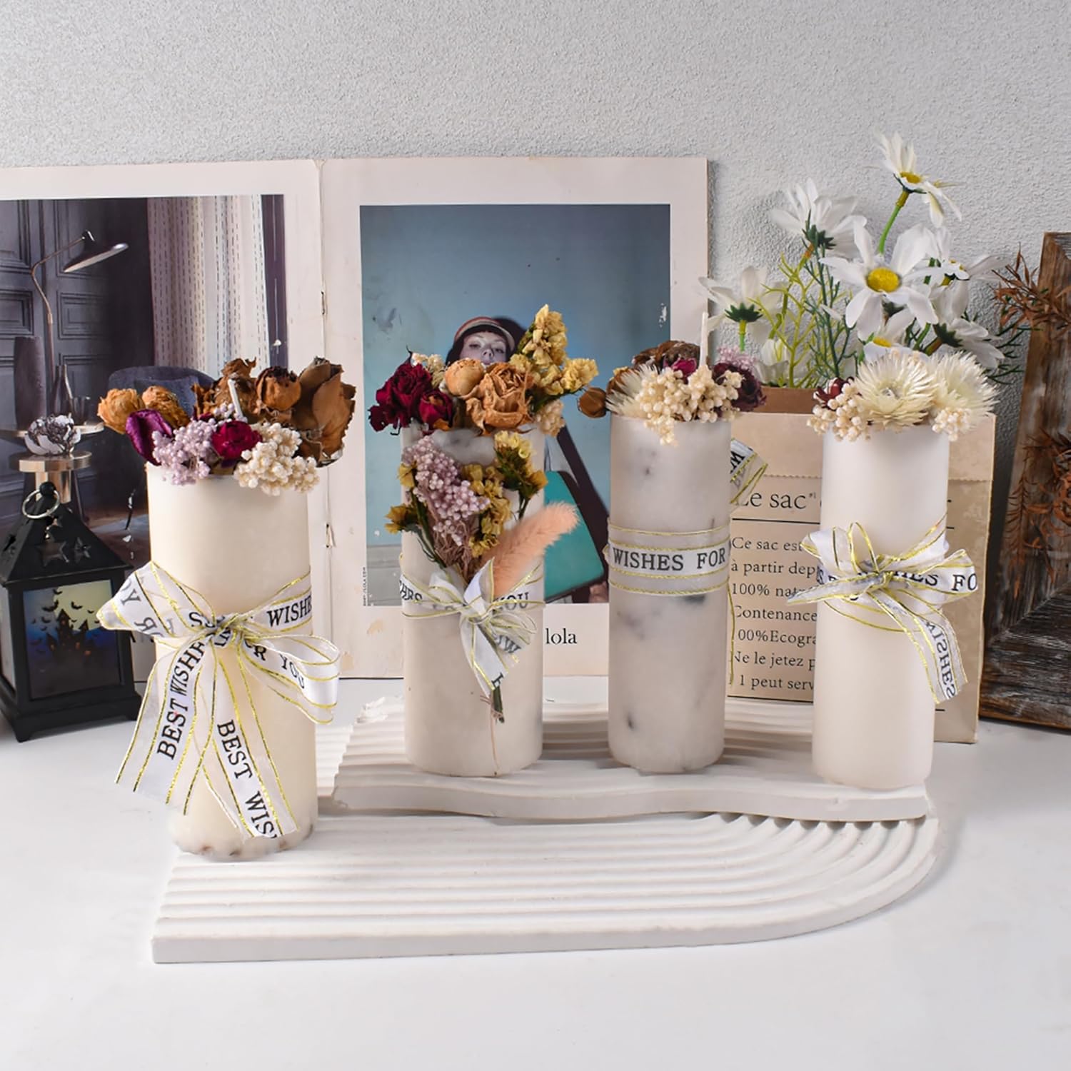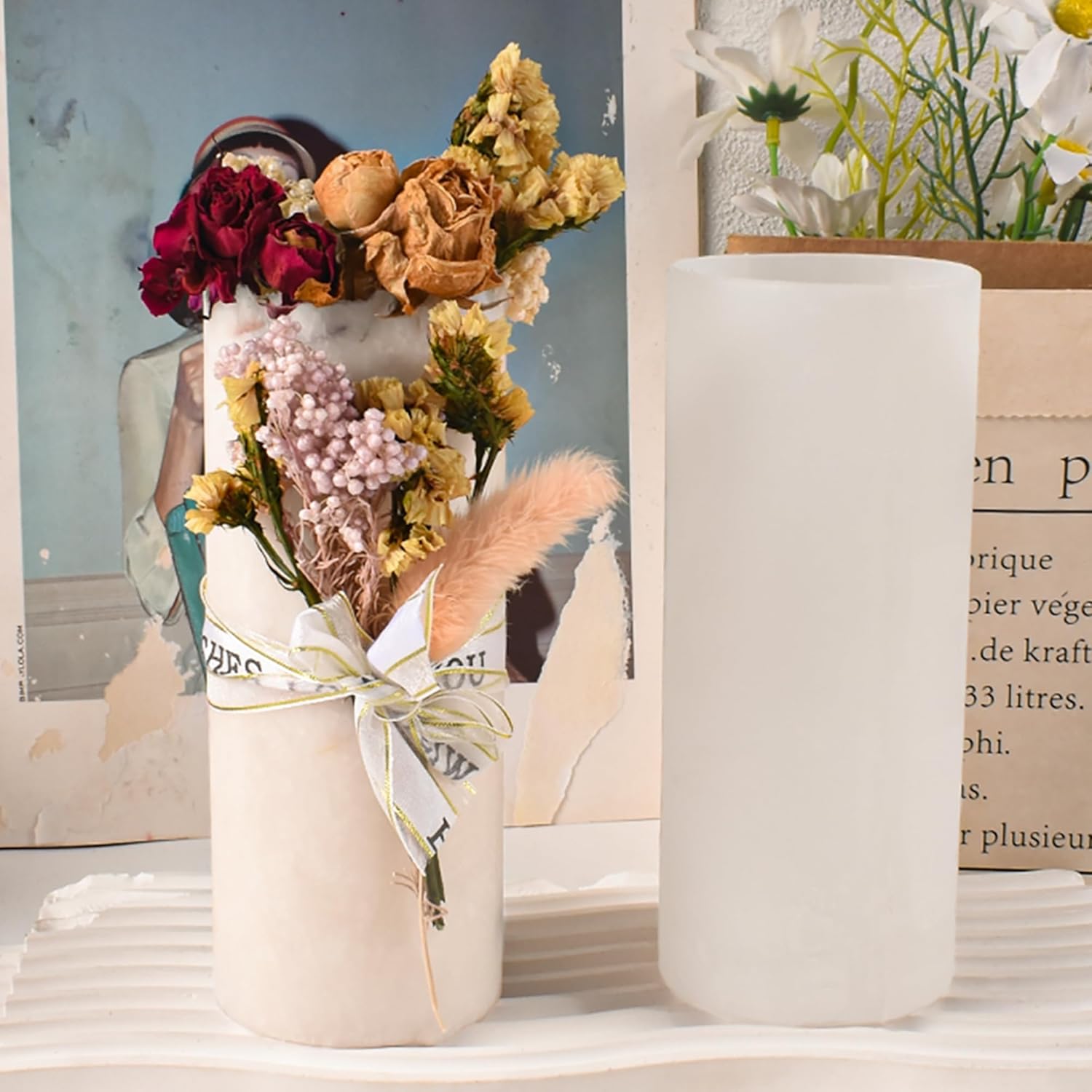 2 Pack 6 Inch Cylinder Candle Mold Pillar Candle Molds Taper - Resin Casting Silicone Molds for Home Decor & Candle Making Wave Spiral Mold
