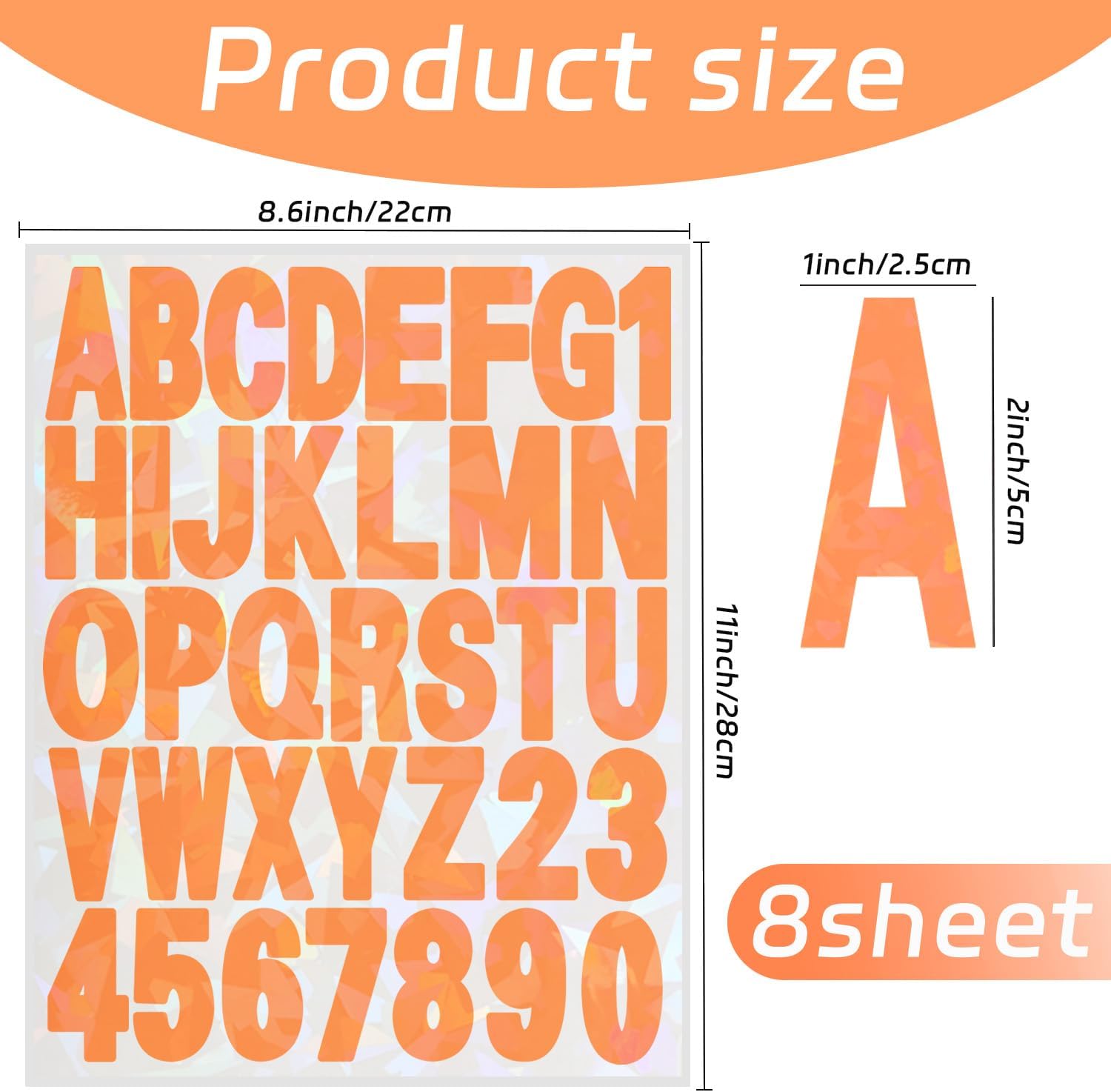 Starboling Letter Stickers,2 inch 8 Sheets Orange Alphabet Sticker,Self Adhesive Vinyl Letter Stickers Mailbox Numbers,for Arts Crafts Outdoor Sign Poster Mailbox Sign Doors Mailboxes Car Truck