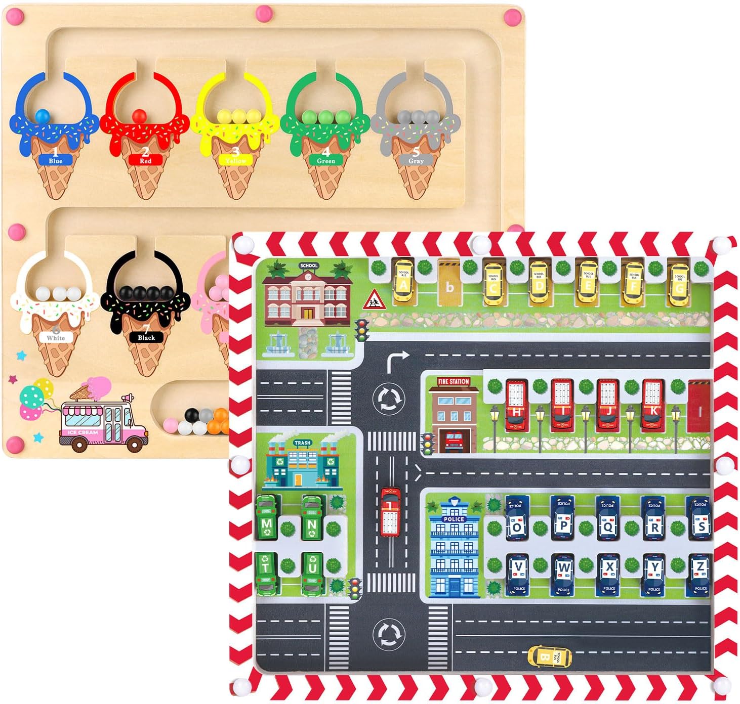 - "【2 -In -1 Magnetic Letter Maze】 Ice Cream Magnetic Maze is a puzzle toy that can help children identify colors and learn numbers. Children can enjoy the fun of color classification and counting, and stimulate the interest of learning numbers and colors. The magnetic maze of the parking lot is an interesting way for children to learn.Find the correct method to complete the word or achieve specific goals.It challenges their ability to solve problems and space consciousness."