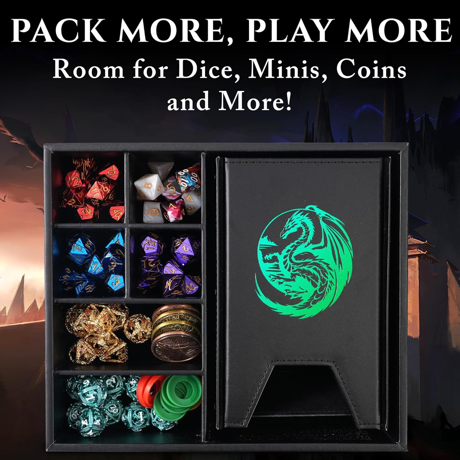 Dice Tray and Dice Tower for DND: All-in-One Tray, Storage & Large Tower for Random Rolls - Stores Your Sets, Mini's etc, Perfect for D&D and RPG Gift Accessories (Green Dragon)