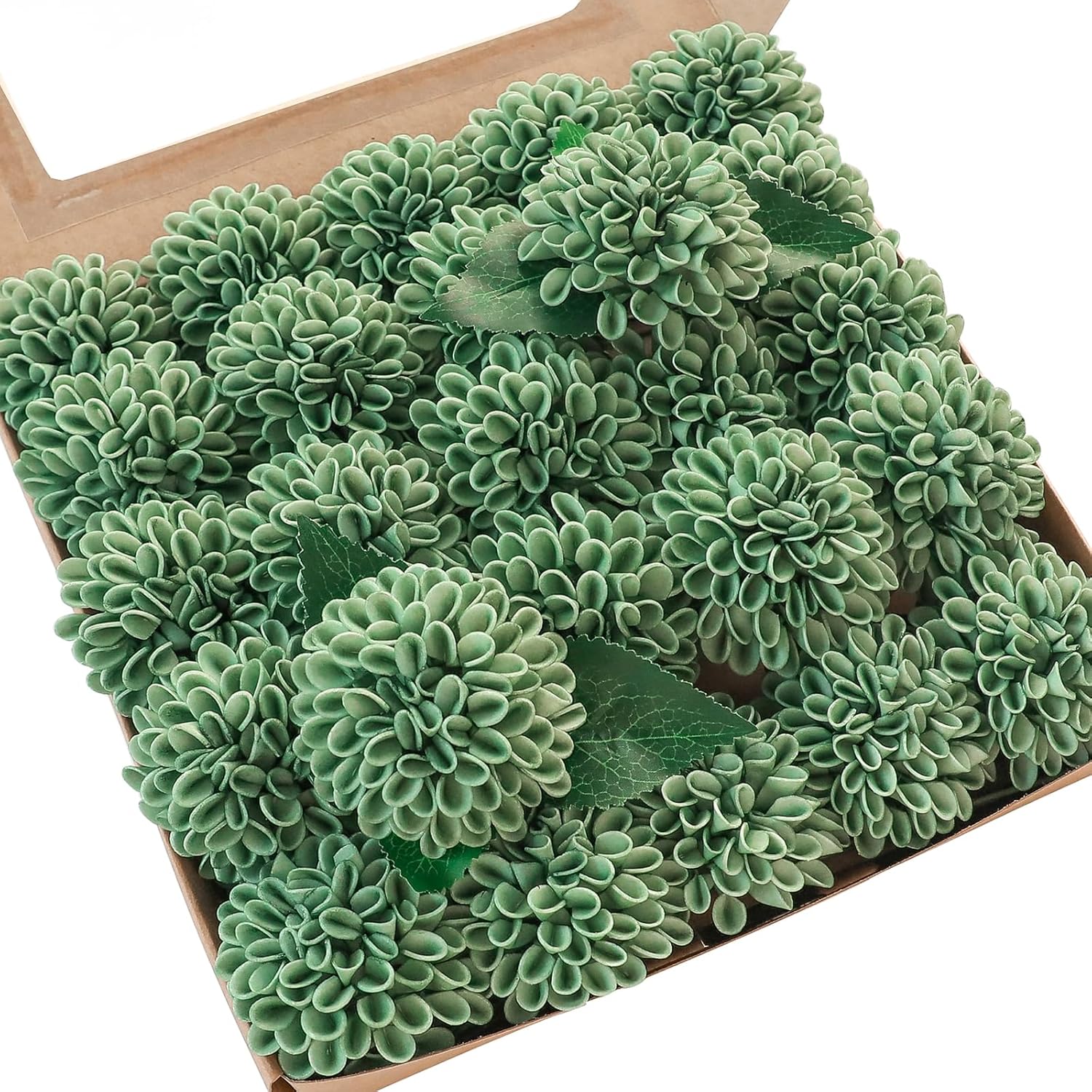 Floroom Artificial Dahlia Flowers 25pcs Real Looking Elf Green Foam Fake Roses with Stems for DIY Wedding Bouquets Bridal Shower Centerpieces Floral Arrangements Party Tables Home Decoration