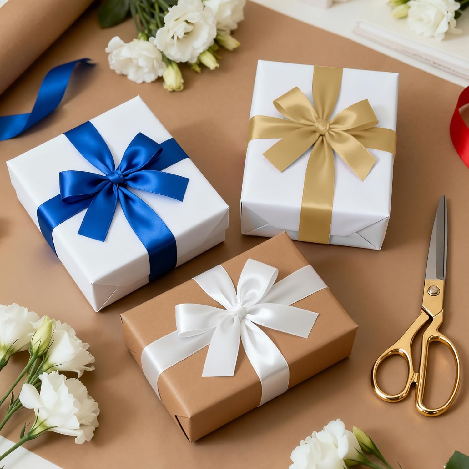 - 【Multiple Colors】: The gift wrap ribbon roll has multiple colors and will not fade easily. The durable gift ribbon can be designed in various palettes to apply in occasions like birthday, wedding, party, holiday decorations, home coming, anniversary, baby shower, family gathering and more.