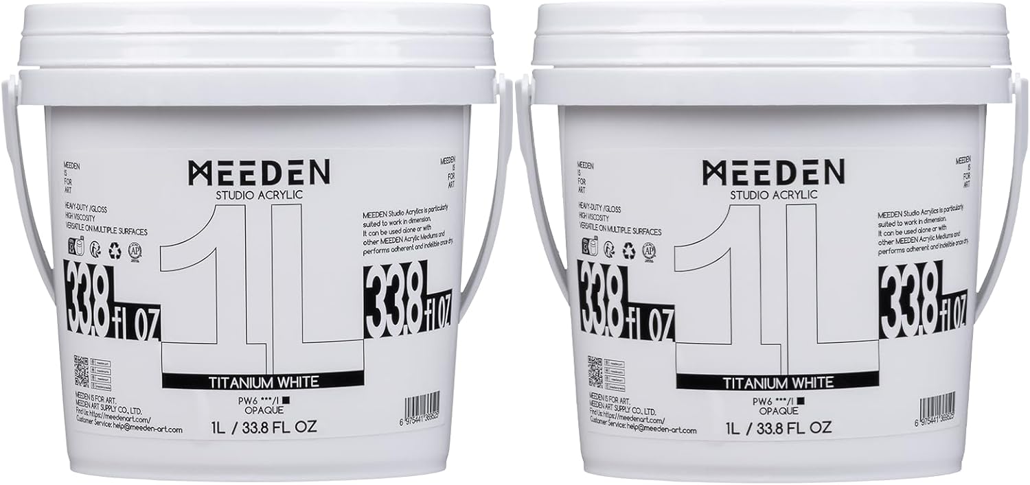 MEEDEN Titanium White Acrylic Paint: 2 Pack 1 L /33.8 oz Heavy Body Gloss - Thick Art Paints for Canvas Crafts Painting