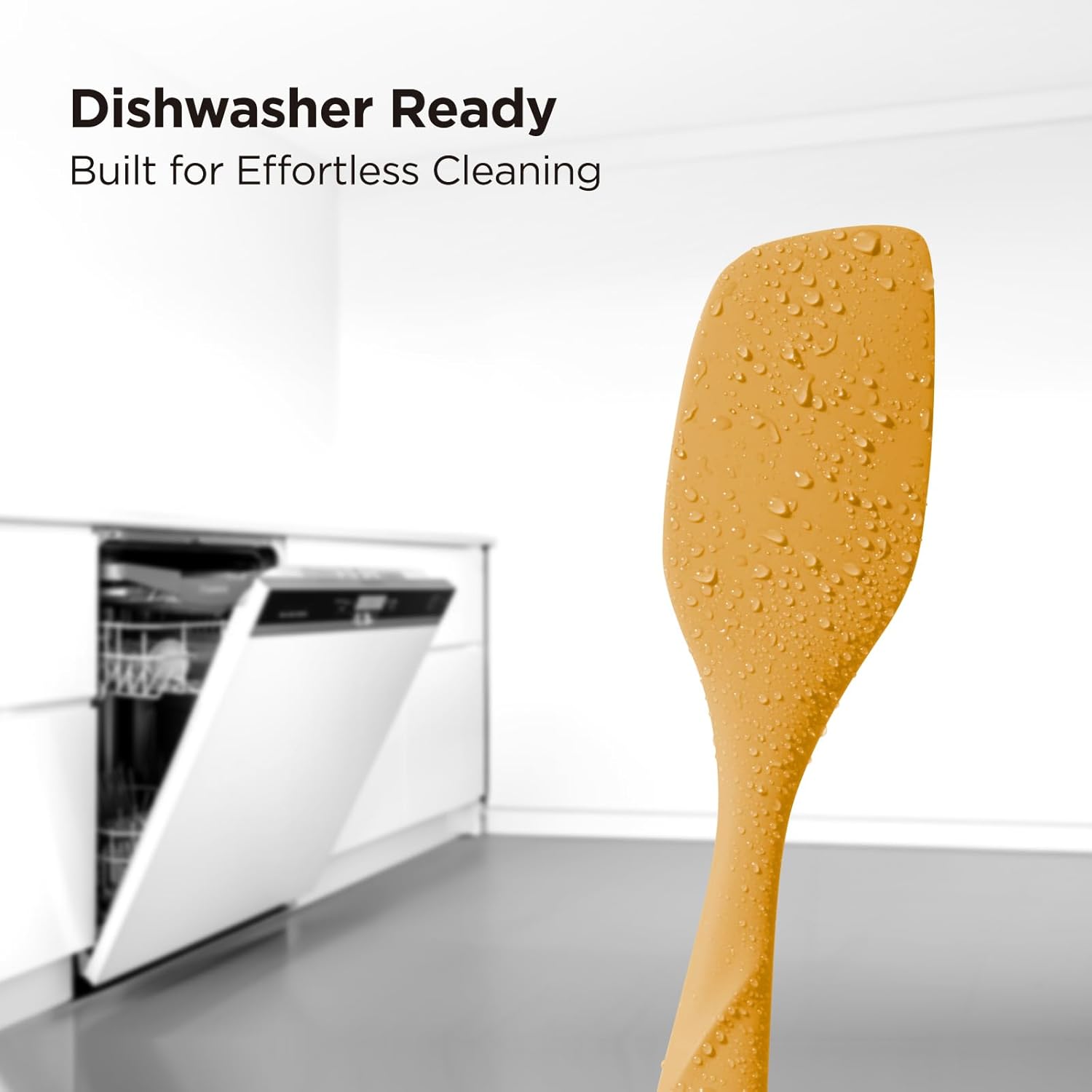Kitchen Mama WaltzGrip Platinum Silicone Scraping Spatula: Heat Resistant, Seamless, Non Stick for Frying Pan Cookware, Safe, Flexible Bowl Scraper - Ideal for Mixing, Baking, Stirring (Yellow)