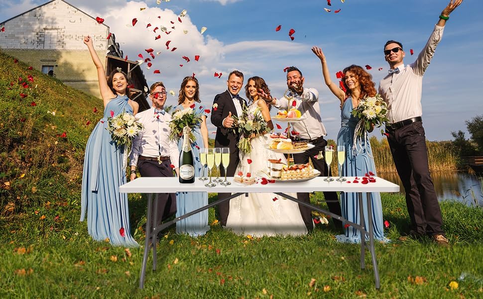 - VERSATILE FUNCTION: This 6ft Plastic Utility Folding Table measuring 27.5 "D x 71 "W x 29.1 "H, it provides plenty of workspace for a variety of uses including indoor events, outdoor picnics, and gatherings of 6-8 people.
