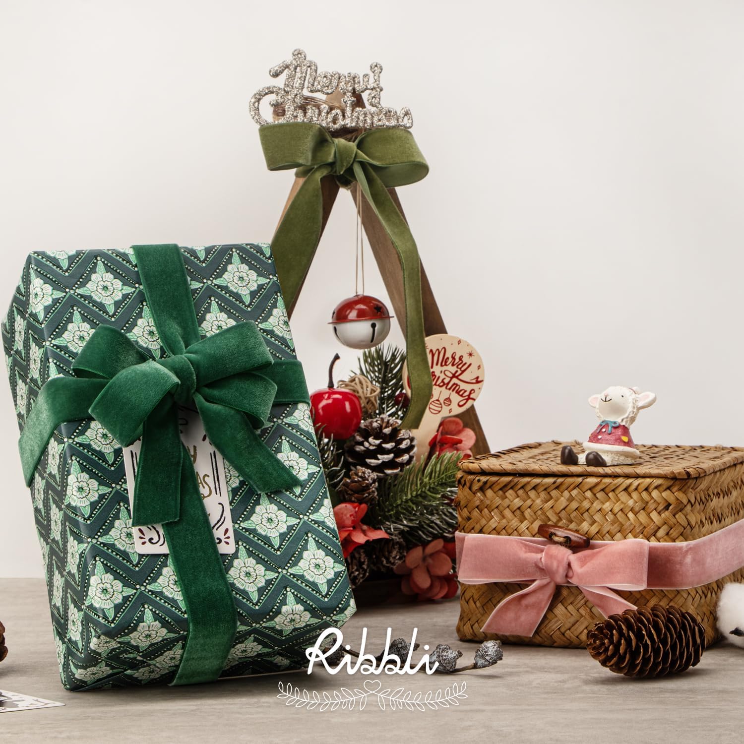 Ribbli Rose Gold Velvet Ribbon 1 Inches Continuous10 Yard Spool Dusty Pink Christmas Ribbon for Gift Wrapping Crafts Home Decor
