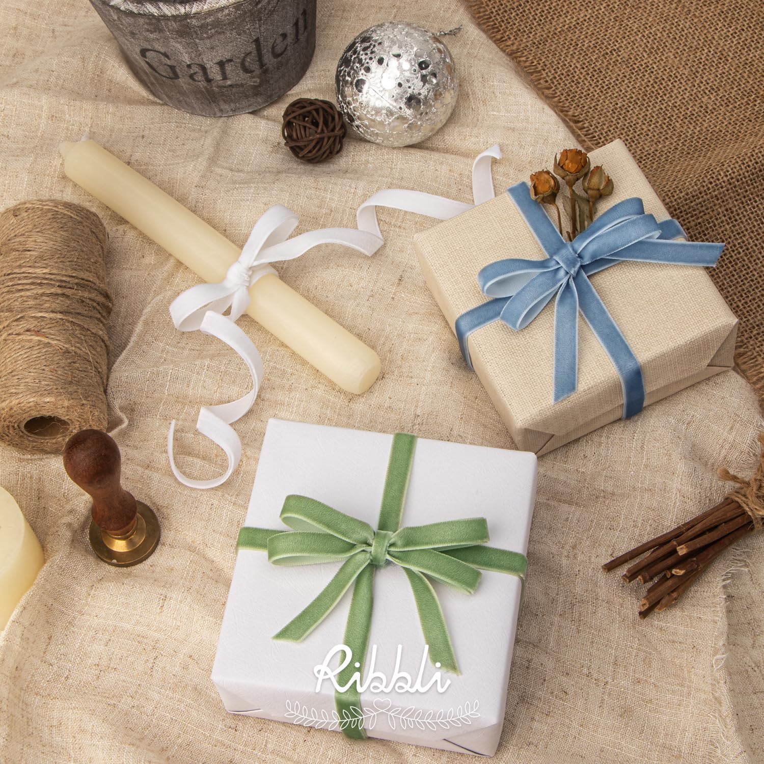 Ribbli Sage Green Velvet Ribbon 3/8 Inches Continuous10 Yard Spool Green Christmas Ribbon for Gift Wrapping Crafts Home Decor