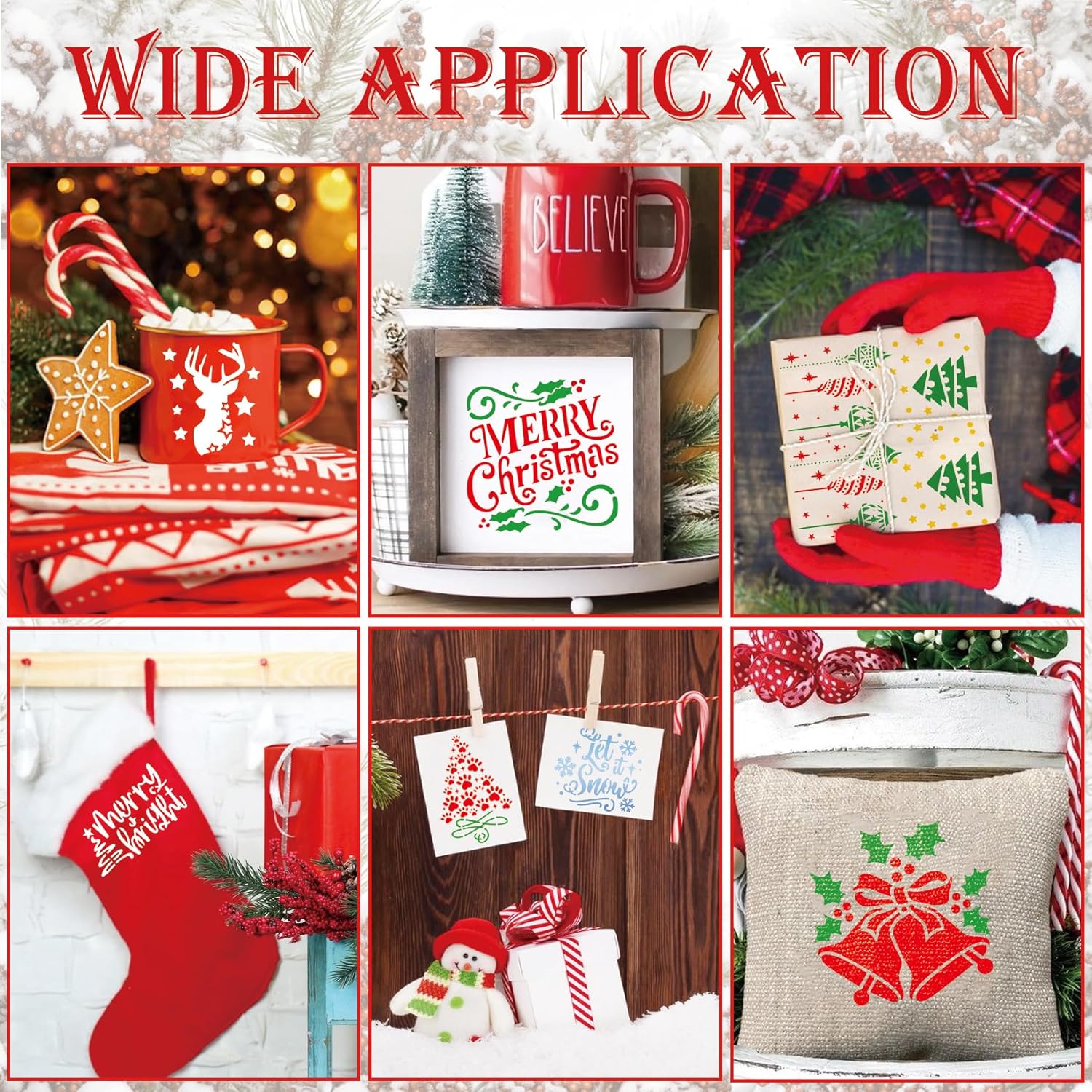 - Widely applicable: These mini Christmas stencils can be used on tier tray, wood signs, card, wrapping paper, fabric, wall, window, cup, christmas decorations, glass, scrapbook, cookie and so on
