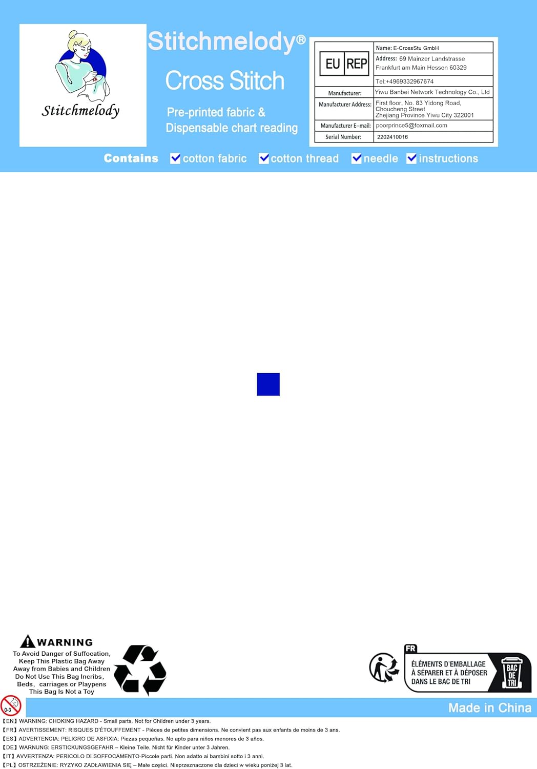 - 【The Package Contains】 embroidery cloth ×1, Needle×2, All color threads, Description ×1, Drawing ×1