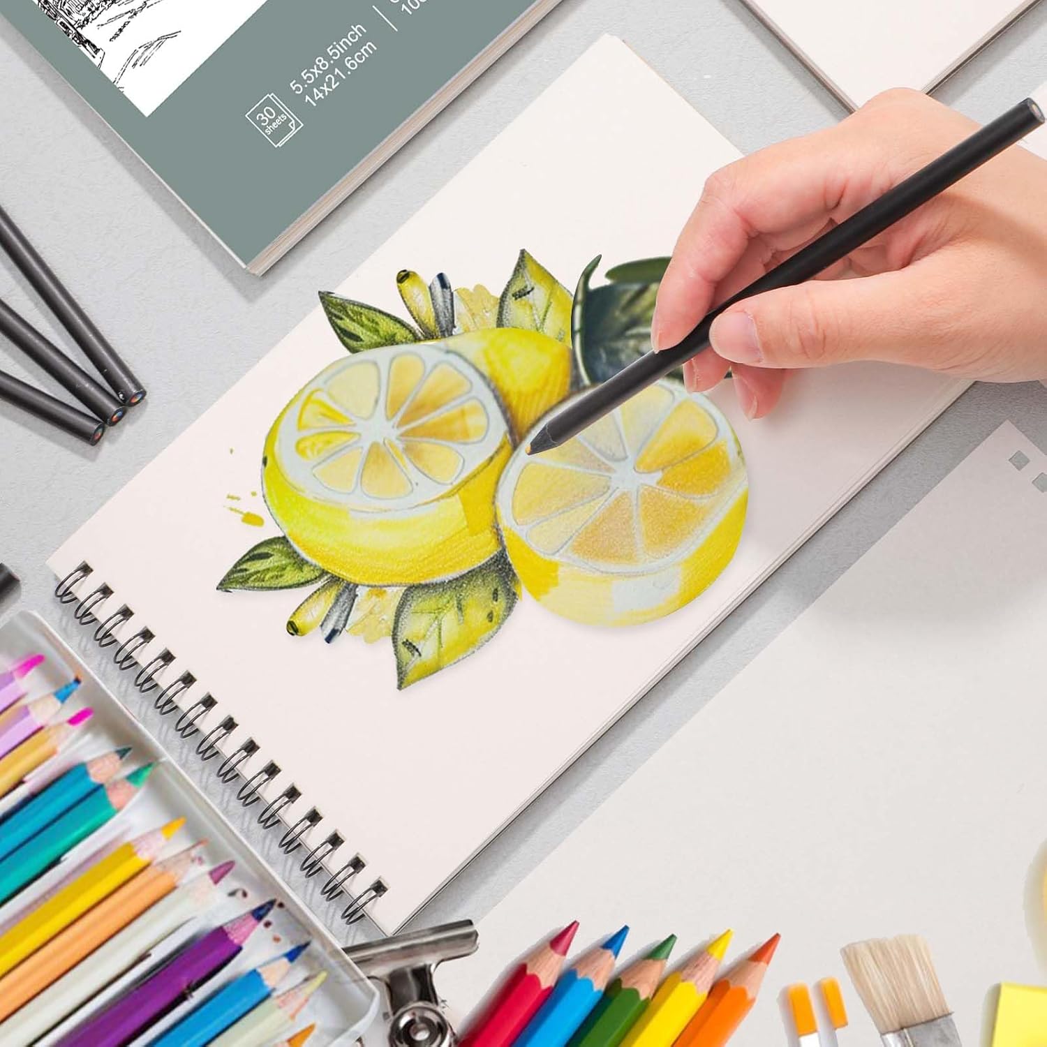 - 【Premium Small Sketchbook Set】4 portable small sketchbooks (5.5" x 8.5"), each with 30 sheets of 100gsm acid-free paper. Tear-resistant pages prevent warping/bleeding, protecting graphite, charcoal, and ink artwork. Compact size fits in a backpack, perfect for outdoor sketching or classroom use