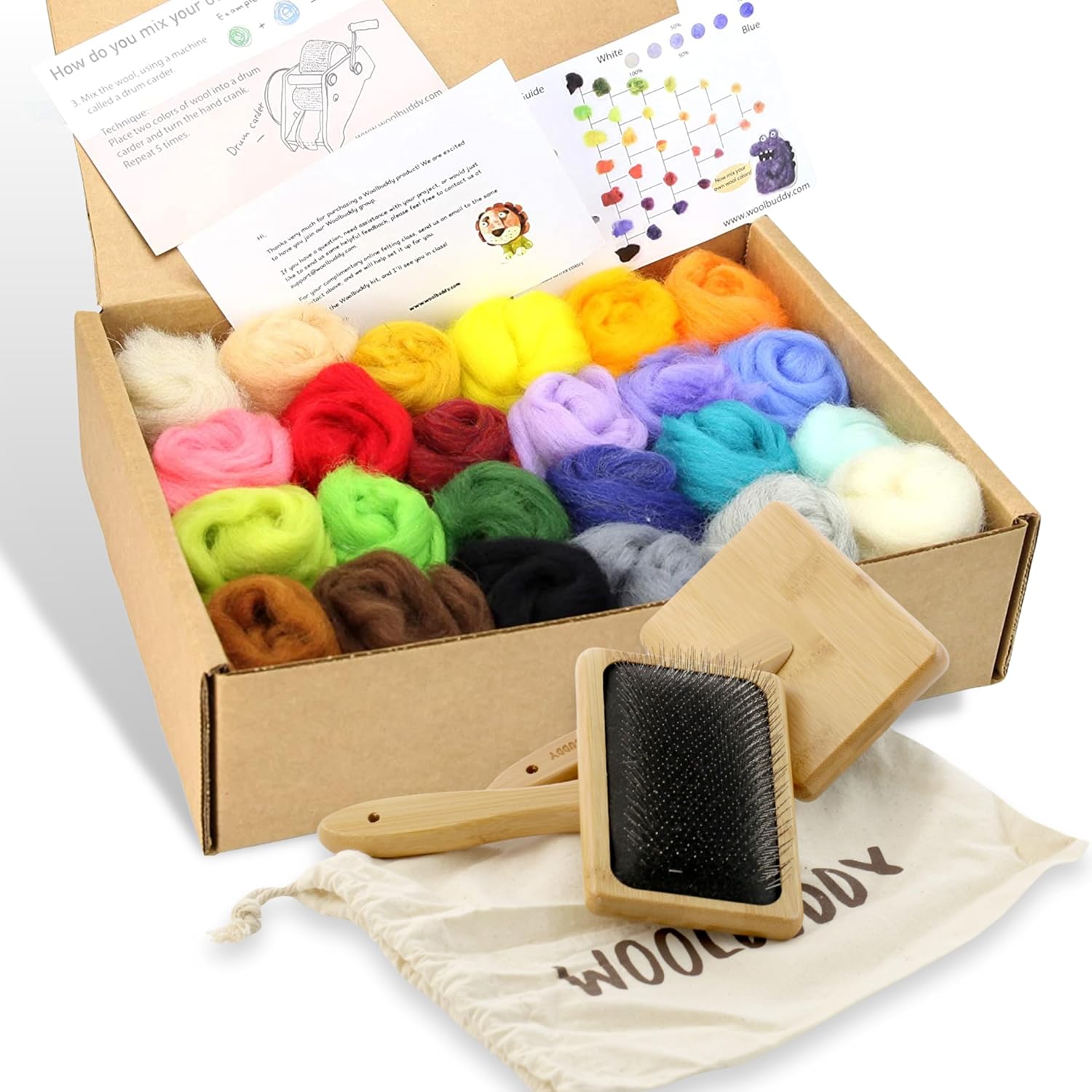 Woolbuddy Wool Carder and 24 Colors Felting Wool Kit