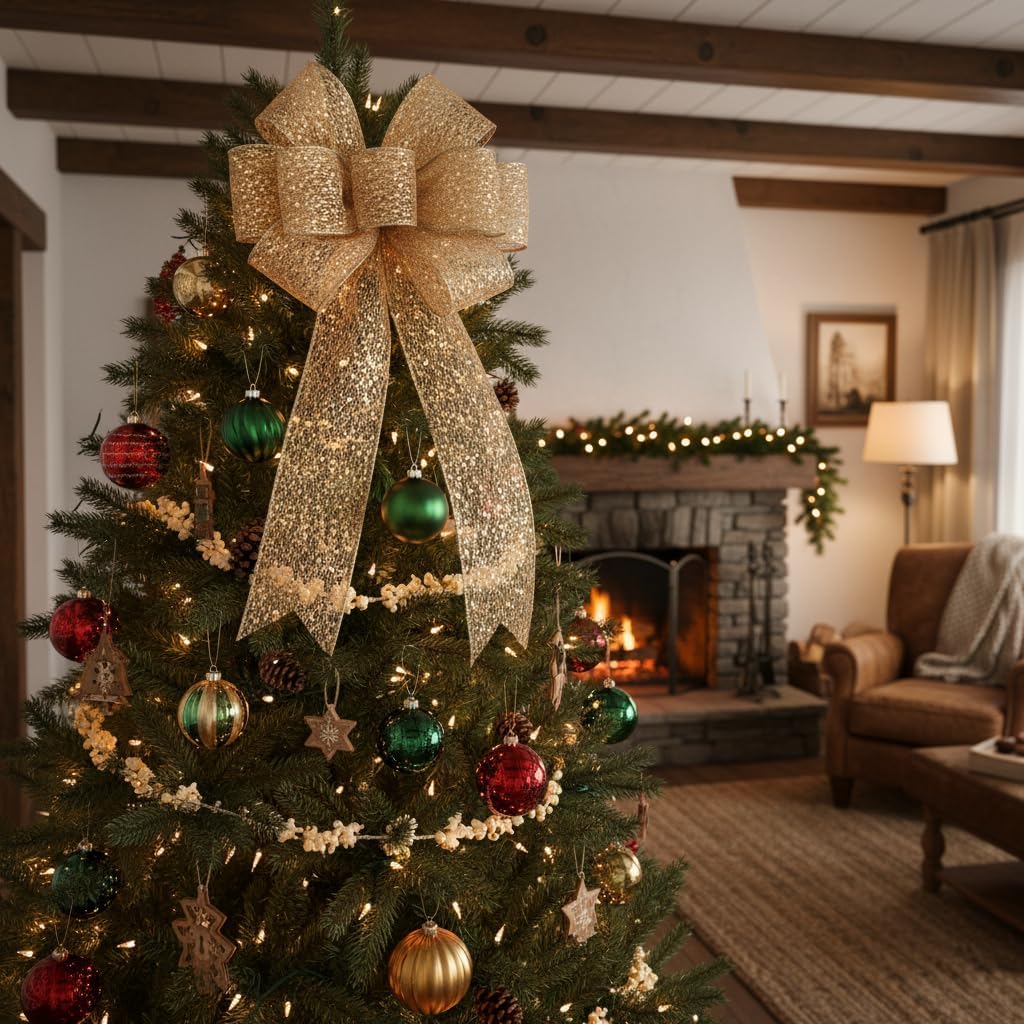 CT CRAFT LLC Sparkling Glitter Mesh Wired Ribbon 4" x 10 Yards Champagne Gold for Christmas Home Decor Bow Gift Wrapping DIY Crafts Wreath