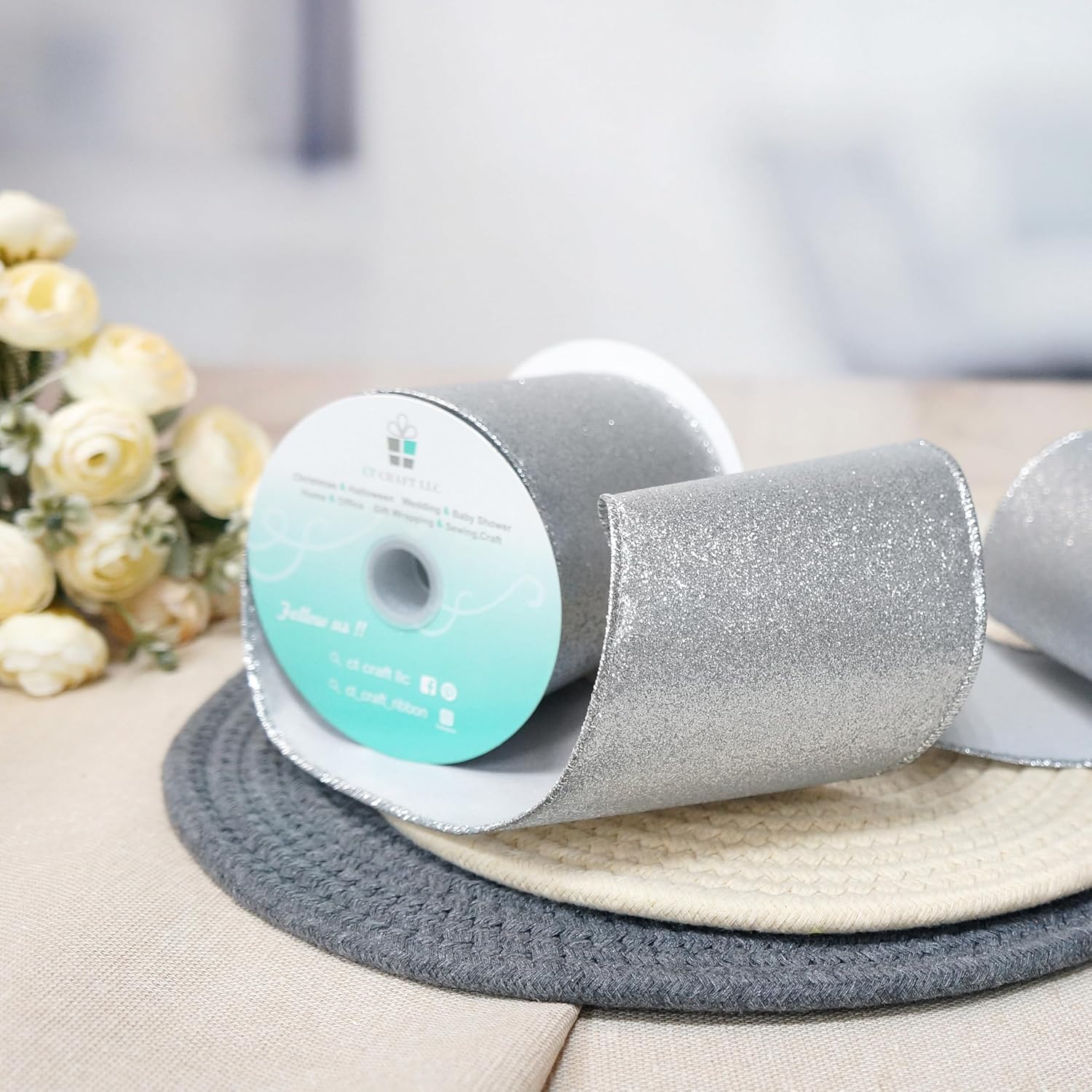 - A MUST-HAVE FOR DECORATION - Don't miss it if you're choosing a Glitter Wired Ribbon 4" Silver for your decoration! Our ribbon works perfectly for decorating and adding finishing touch to your craft projects. Simple and elegant.