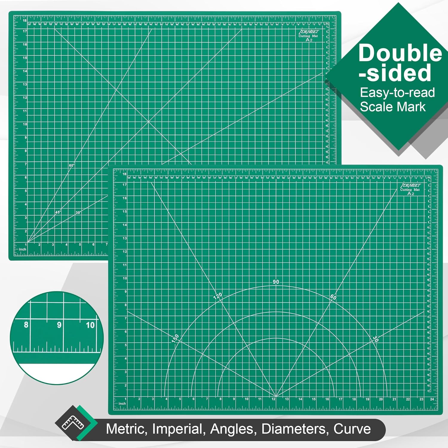 - 【Easy-to-read Scale Mark】Double-side clearly printed with inches, metric grid lines, and angles. The glossy and smooth surface provides a non-slip, non-glare worktable. Perfect for artists, crafters, quilters, engravers, and hobbyists.