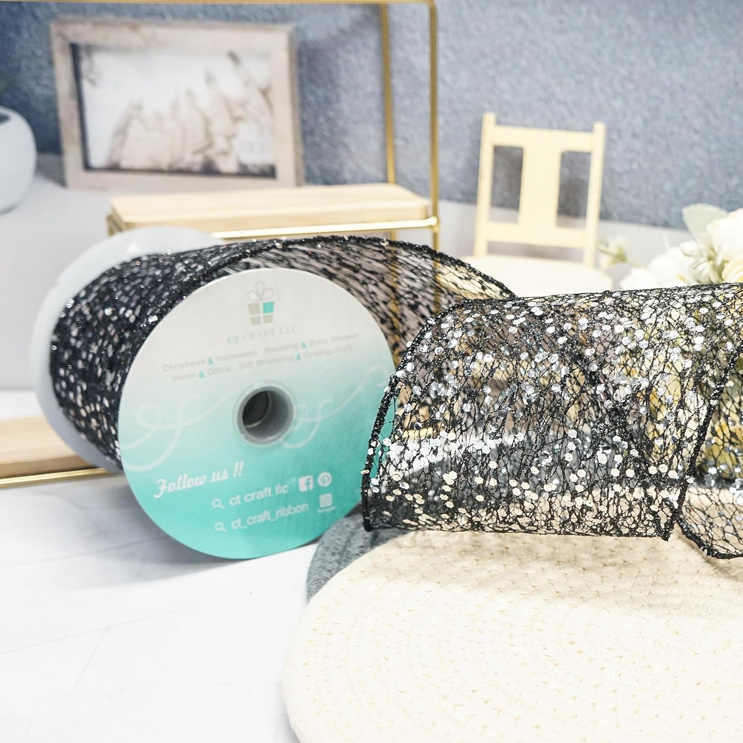 - GREAT WORKMANSHIP - Our Sparkling Glitter Mesh Wired Ribbon 4" has a density weave so you won’t find any loose edges. You won’t find any fraying ends or loose strings anywhere, making our Sparkling Glitter Mesh Wired Ribbon 4" Black color perfect for high-end and professional DIY works and Crafts.