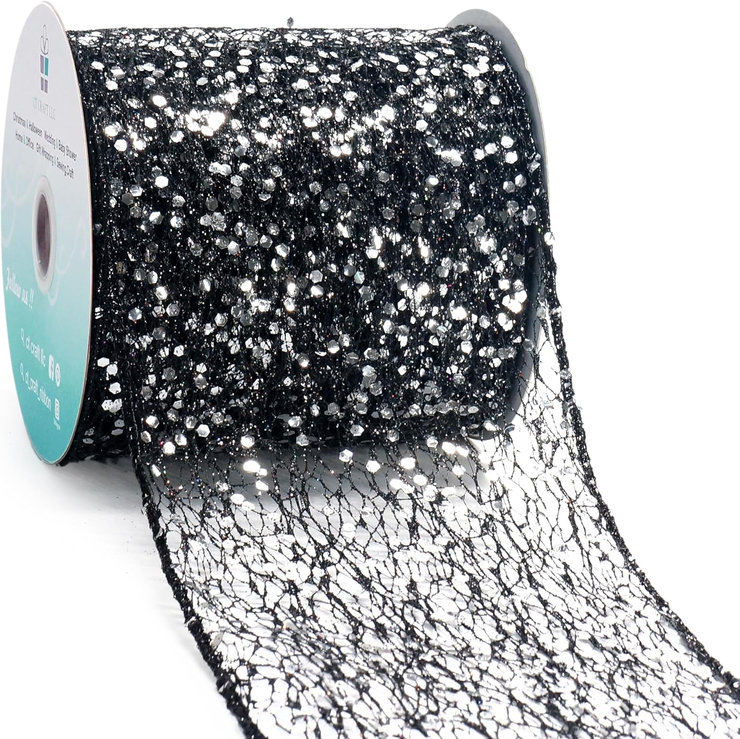 - A MUST-HAVE FOR DECORATION - Don't miss it if you're choosing a Sparkling Glitter Mesh Wired Ribbon 4" Black for your decoration! Our ribbon works perfectly for decorating and adding finishing touch to your craft projects. Simple and elegant.