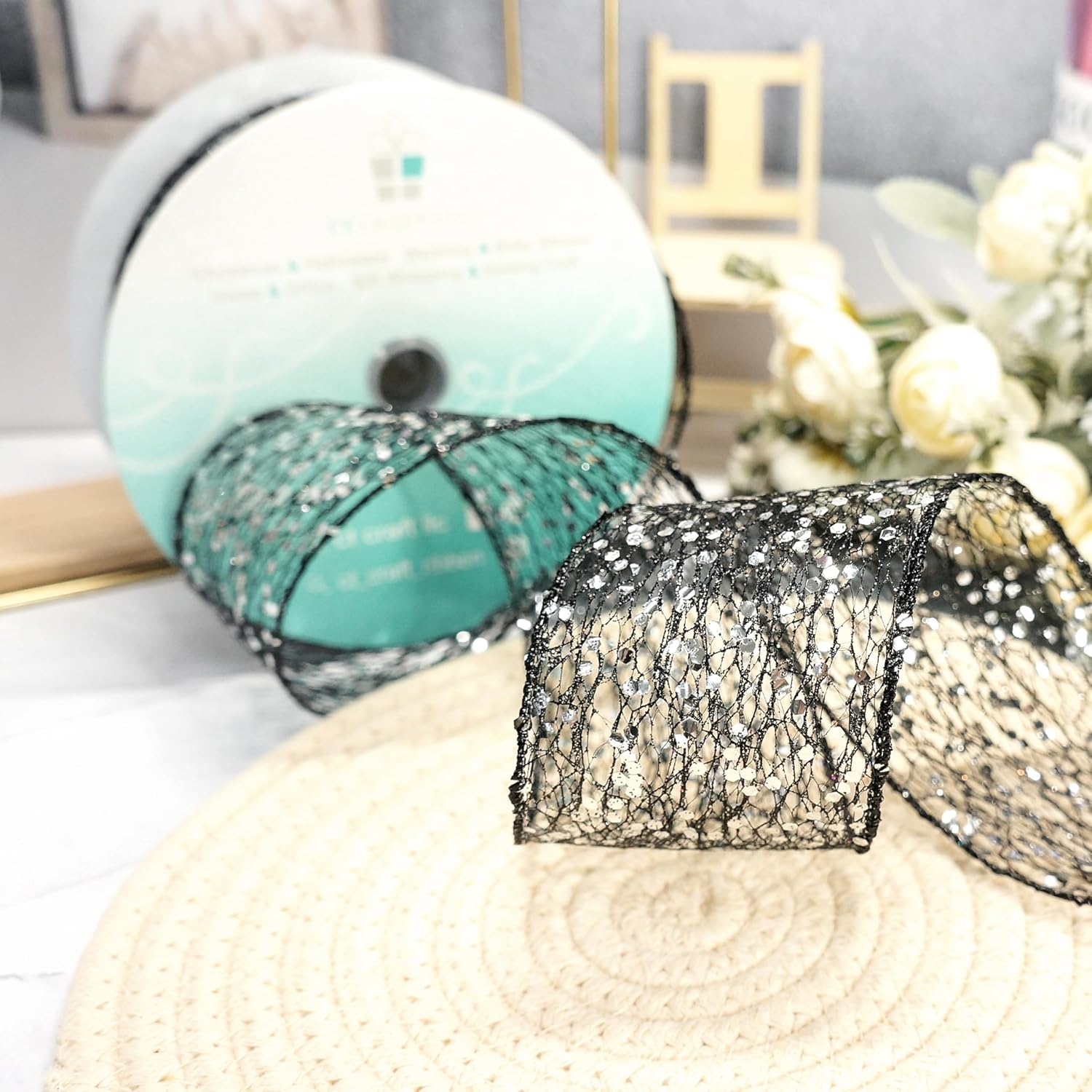 - A MUST-HAVE FOR DECORATION - Don't miss it if you're choosing a Sparkling Glitter Mesh Wired Ribbon 2.5" Black for your decoration! Our ribbon works perfectly for decorating and adding finishing touch to your craft projects. Simple and elegant.