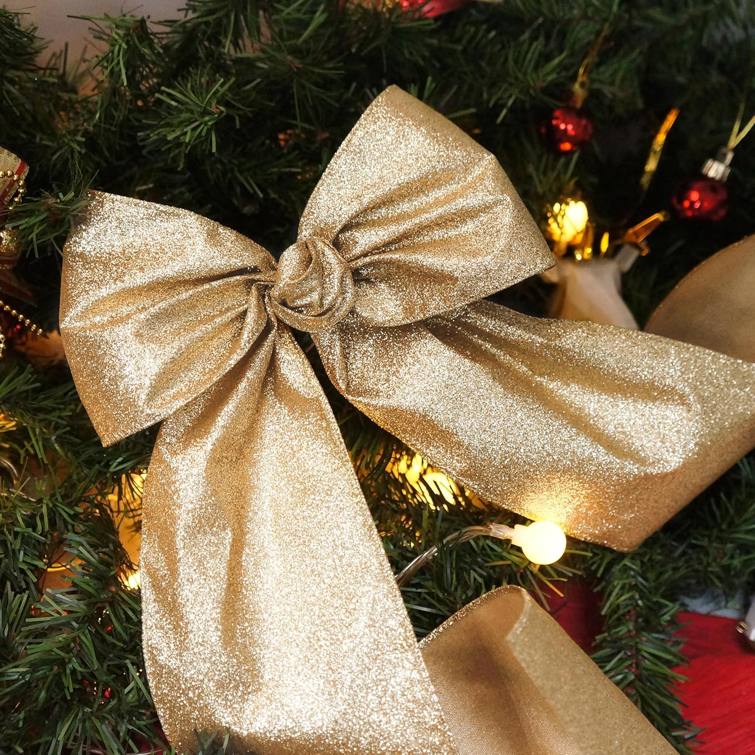 - GREAT WORKMANSHIP - Our Glitter Wired Ribbon 4" has a density weave so you won’t find any loose edges. You won’t find any fraying ends or loose strings anywhere, making our Glitter Wired Ribbon 4" light gold color perfect for high-end and professional DIY works and Crafts.
