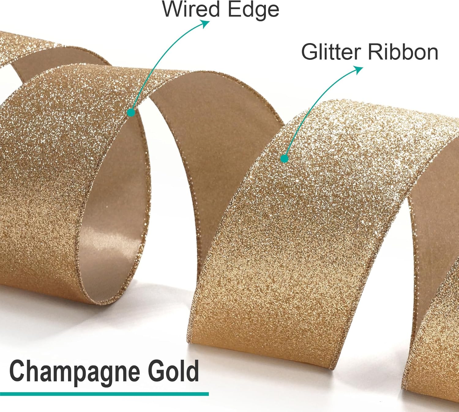 - OCCASION - Our Glitter Wired Ribbon 2.5" Champagne Gold color are very easy to match and suitable for birthdays, party decorations, Mother's Day, Valentine's Day, Easter, Independence Day, Halloween, Christmas, New Year's gifts, Wedding decorations, Baby showers etc.