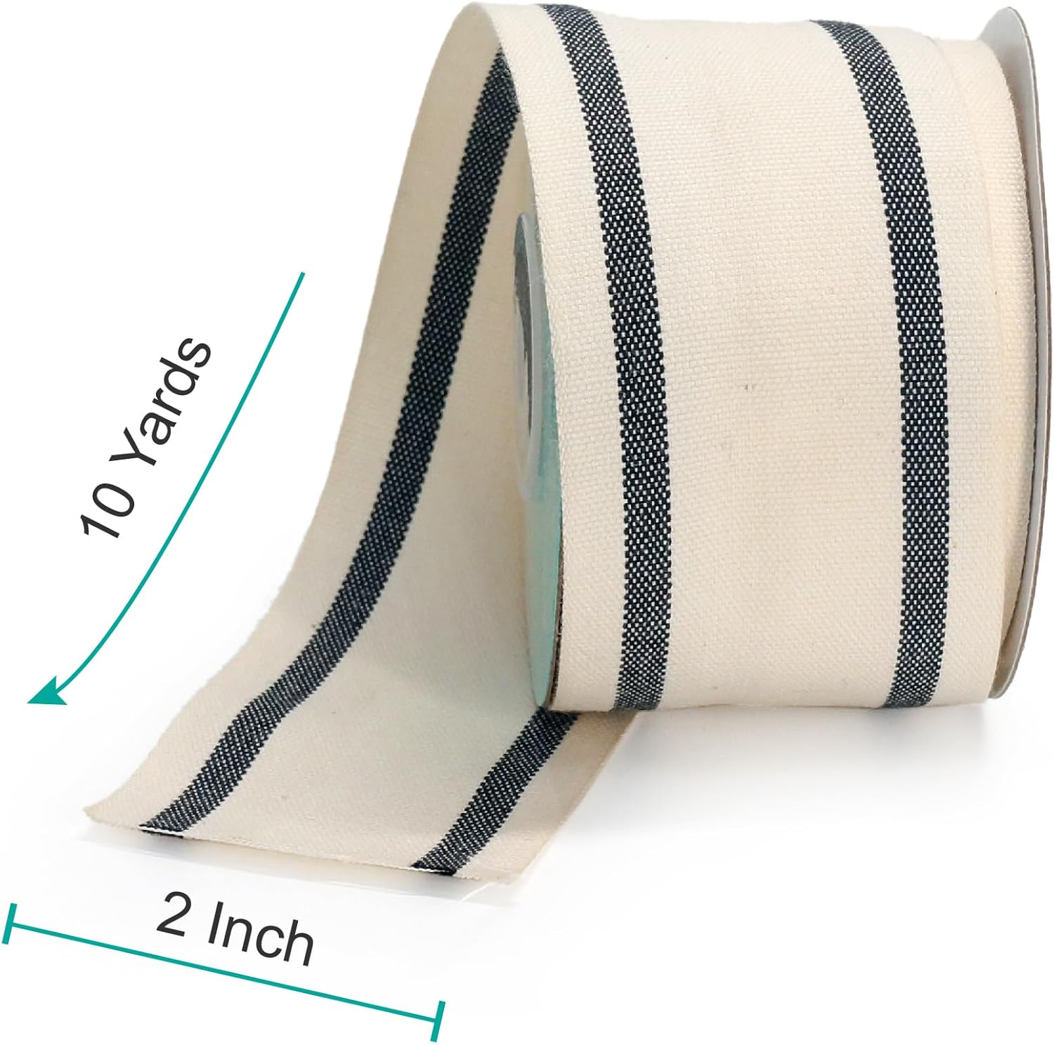 - EASY TO USE - The 10-yard long Ivory Cotton Black Stripes Ribbon 2" is enough for all the decorating and accenting your DIY Crafts. The Ivory Cotton Black Stripes Ribbon 2" is easy to use and won’t tangle. It can be tied or glued on gift packages and DIY craft projects such as car and chair bow, wreath, flower bouquet.