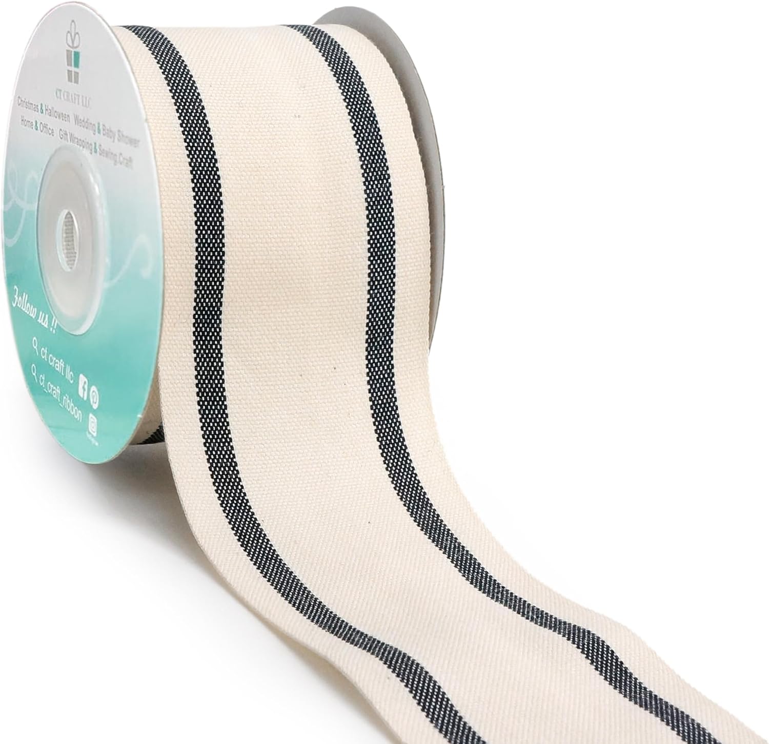 - SIMPLE YET ELEGANT - There is nothing that can accent your Craft better than our Ivory Cotton Black Stripes Ribbon 2" for crafts. This ribbon matches any type of gift wrapping paper and the texture not only adds to their premium quality. You'll appreciate the ease and finesse with which these Ivory Cotton Black Stripes Ribbon 2" glide through your fingers.