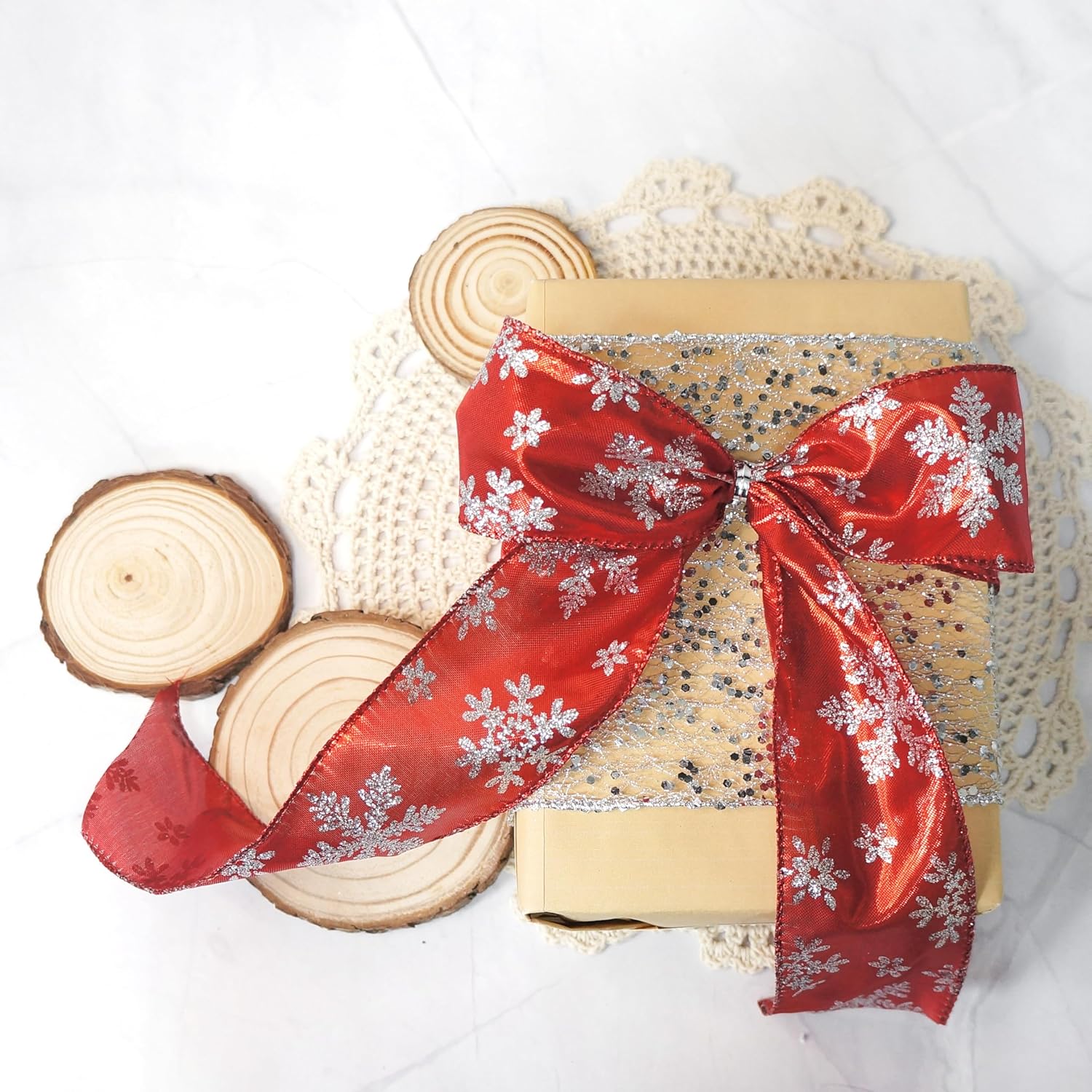 - OCCASION - Our red Metallic with Silver Glitter Snowflake Wired Ribbon 2.5" are very easy to match and suitable for birthdays, party decorations, Mother's Day, Valentine's Day, Easter, Independence Day, Halloween, Christmas, New Year's gifts, Wedding decorations, Baby showers etc.