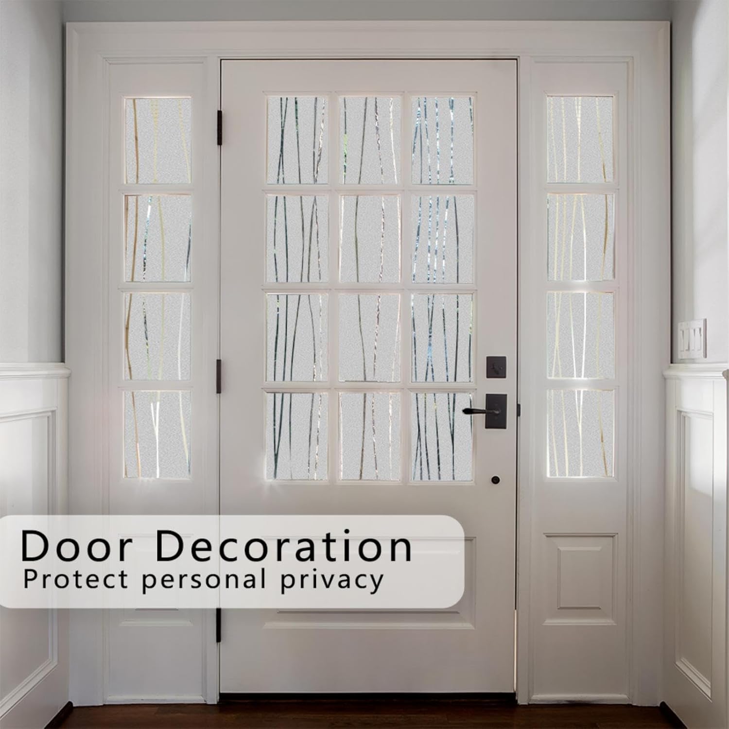 Finnez Window Privacy Film Decorative Frosted Window Cling Privacy Film for Glass, Non-Adhesive Heat Anti-UV for Home Office Living Room, Irregular Stripe Patterns, 29.5 x 118.1 Inches