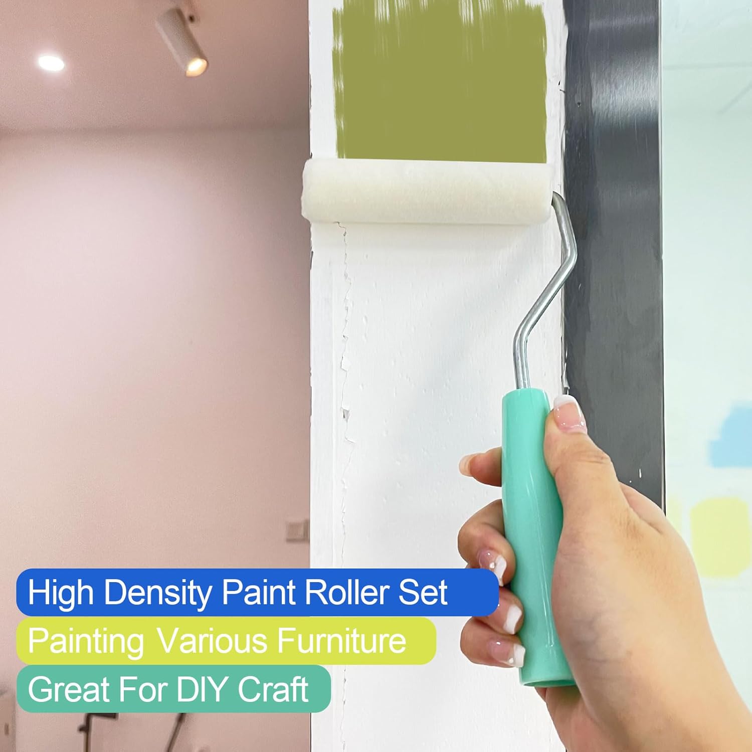 - 【Versatile Use】4 " Paint roller kits are suitable for a variety of surfaces such as walls, ceilings, furniture, etc, mini size paint rollers very nice for door edges and small areas, and our microfiber paint roller kits are ideal for professional painters and DIY enthusiasts to deliver the ideal painting result every time