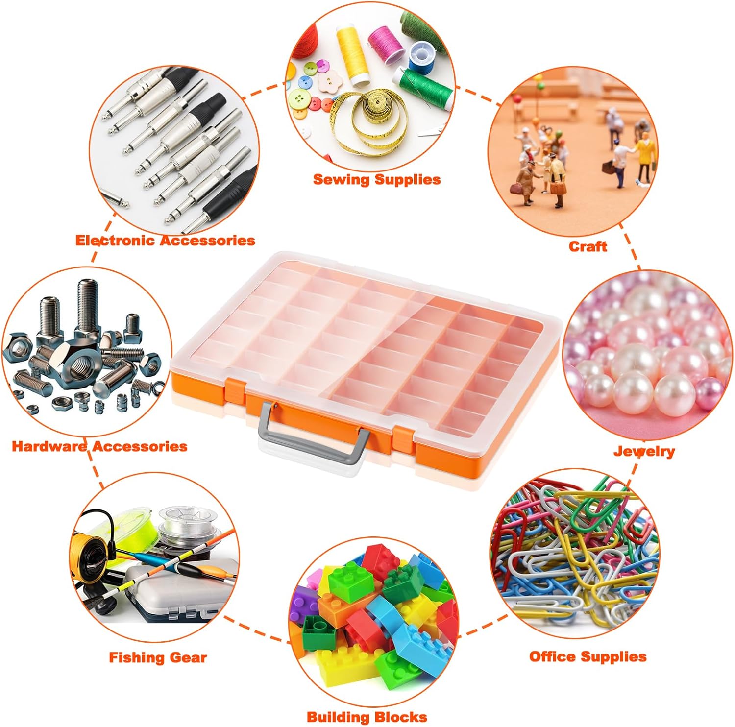 48 Grids Large Plastic Organizer Box with Adjustable Dividers, Beads Storage Containers Compartment Tackle Box Case for Crafts Hobby Small Parts Fishing Seeds Jewelry (Orange)