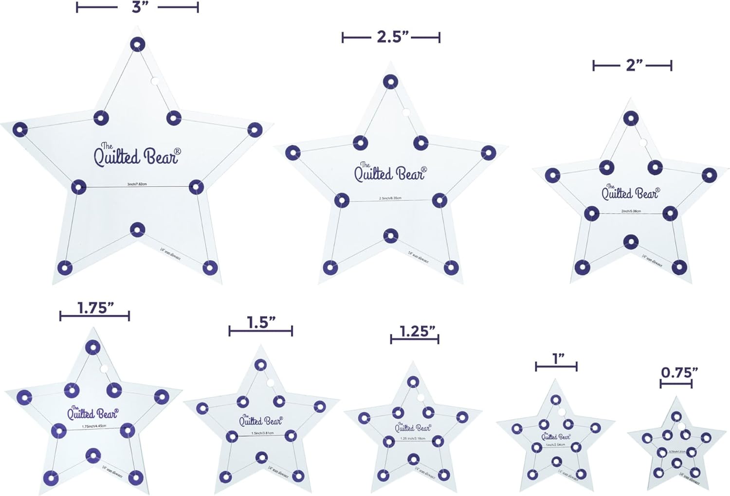 The Quilted Bear Star Quilting Templates – 8 Clear Non-Slip Acrylic Quilt Templates for Precise Fabric Cutting & Stress-Free Machine Quilting - Ideal for Quilt & Sewing Supplies (¾–3")