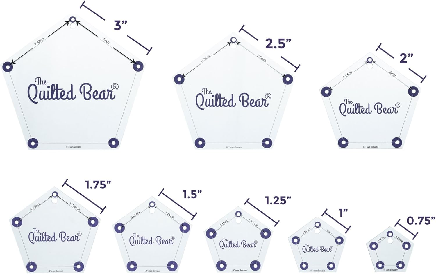 The Quilted Bear Pentagon Quilting Templates – 8 Clear Non-Slip Acrylic Quilt Templates for Precise Fabric Cutting & Stress-Free Machine Quilting - Ideal for Quilt & Sewing Supplies (¾–3")