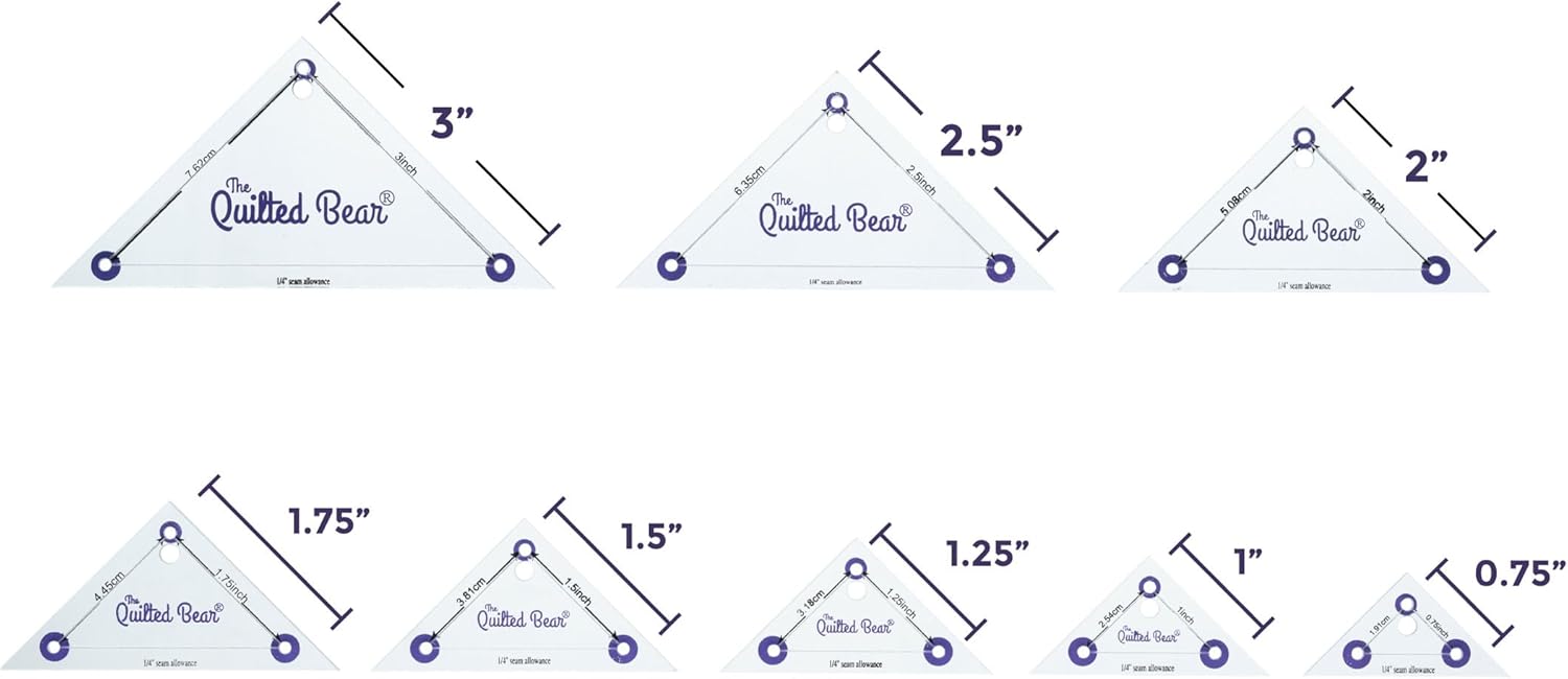 The Quilted Bear Right Angle Triangle Quilting Templates – 8 Clear Non-Slip Acrylic Quilt Templates for Precise Fabric Cutting & Stress-Free Machine Quilting - for Quilt & Sewing Supplies (¾–3")