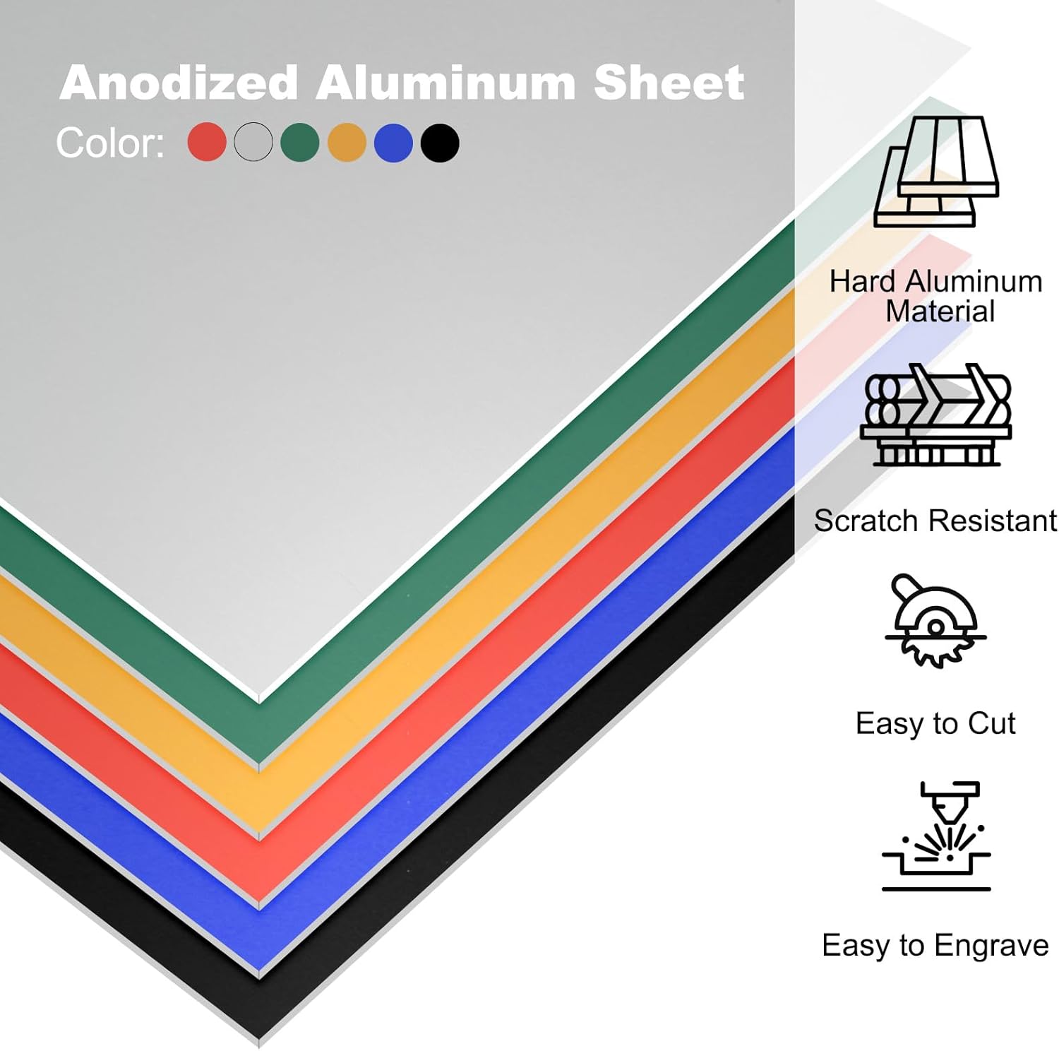 - Advantage: Made of quality aluminum material, the anodized aluminum sheet is preservative, hard, sturdy, and not easy to deform. It has a smooth surface and good scratch resistance after oxidation treatment without cracks or holes, does not easily adhere to dust, is easy to clean even if dirty, perfect for precise processing. Easy to cut and engrave, use professional machines to easily design personalized engraving items.