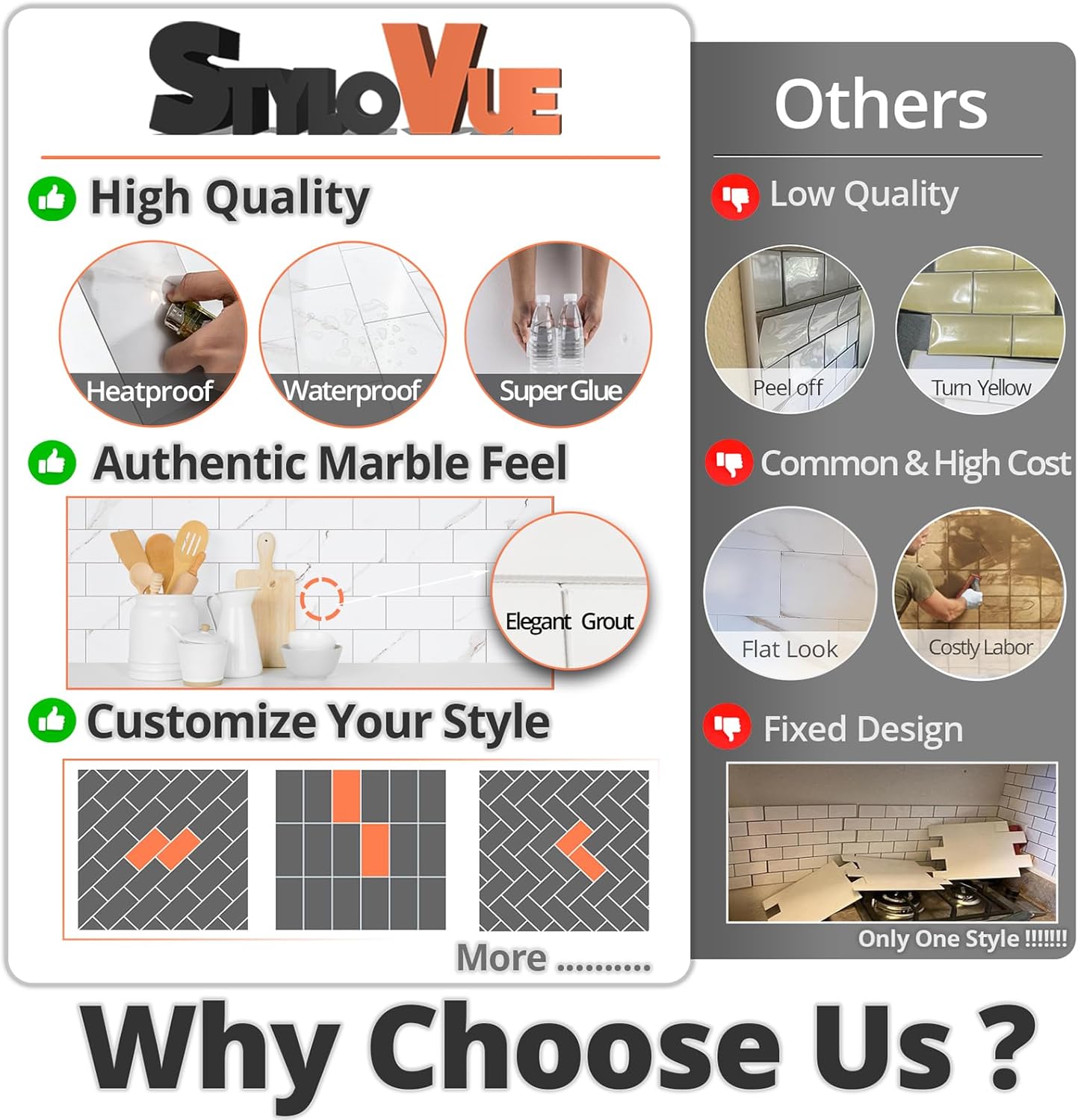- ๐๐ฅ๐๐ฏ๐๐ญ๐ ๐๐จ๐ฎ๐ซ ๐๐ฉ๐๐๐: Featuring unique slot edges for a realistic grout-look, StyloVue self adhesive wall tiles offer an authentic design and texture that customers adore. Elevate the aesthetic of your space while simplifying maintenance and cleaning, without the hassle of traditional grouting.
