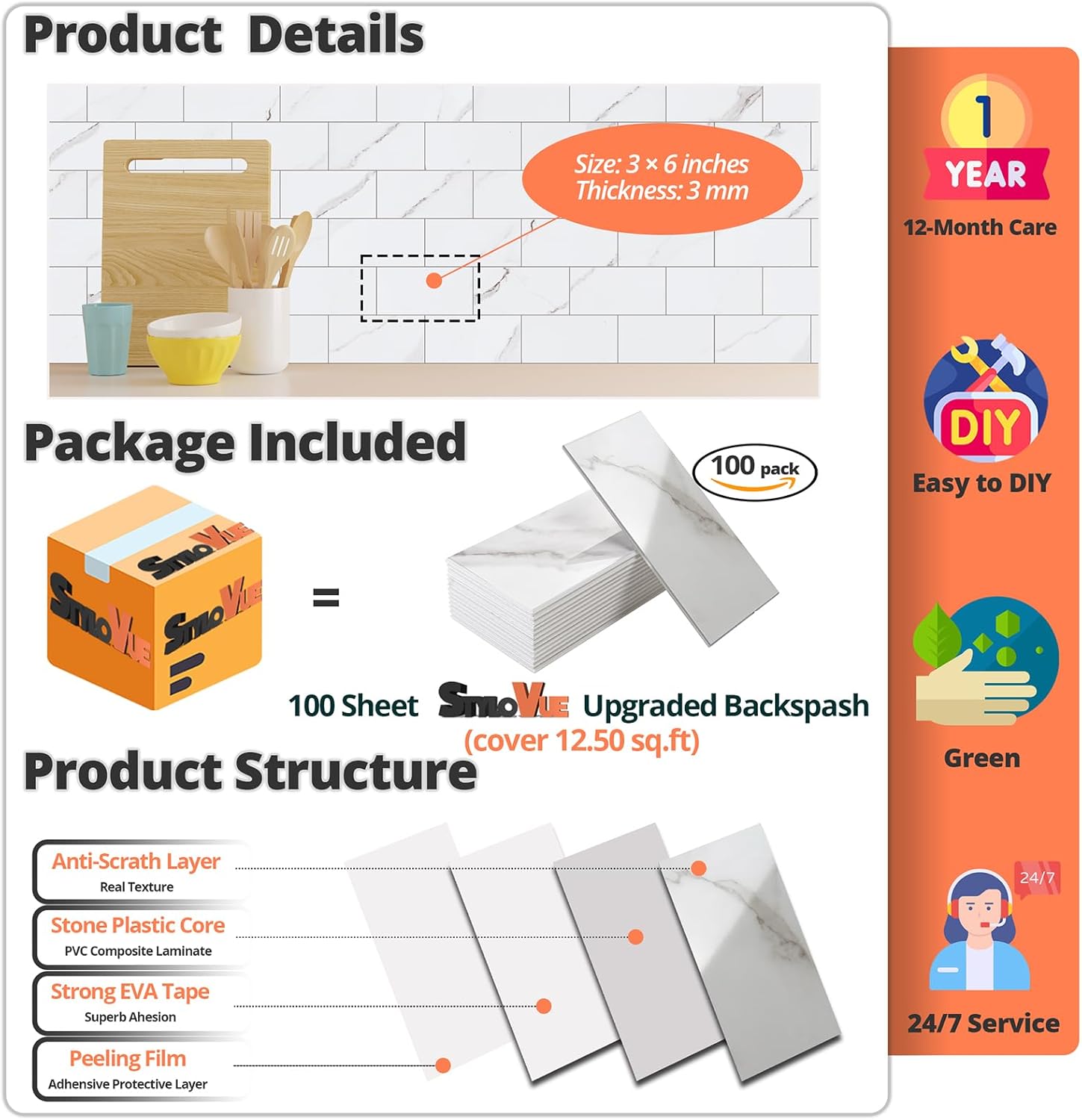 - ๐๐ซ๐๐ฆ๐ข๐ฎ๐ฆ ๐๐๐ซ๐๐จ๐ซ๐ฆ๐๐ง๐๐: Our peel and stick wall tiles are designed with high-performance PVC polymer material, offering waterproof, heat-resistant, stain-resistant, anti-scratch, and fadeless properties. Rest assured, the super-strong adhesive ensures the tiles stay securely in place!