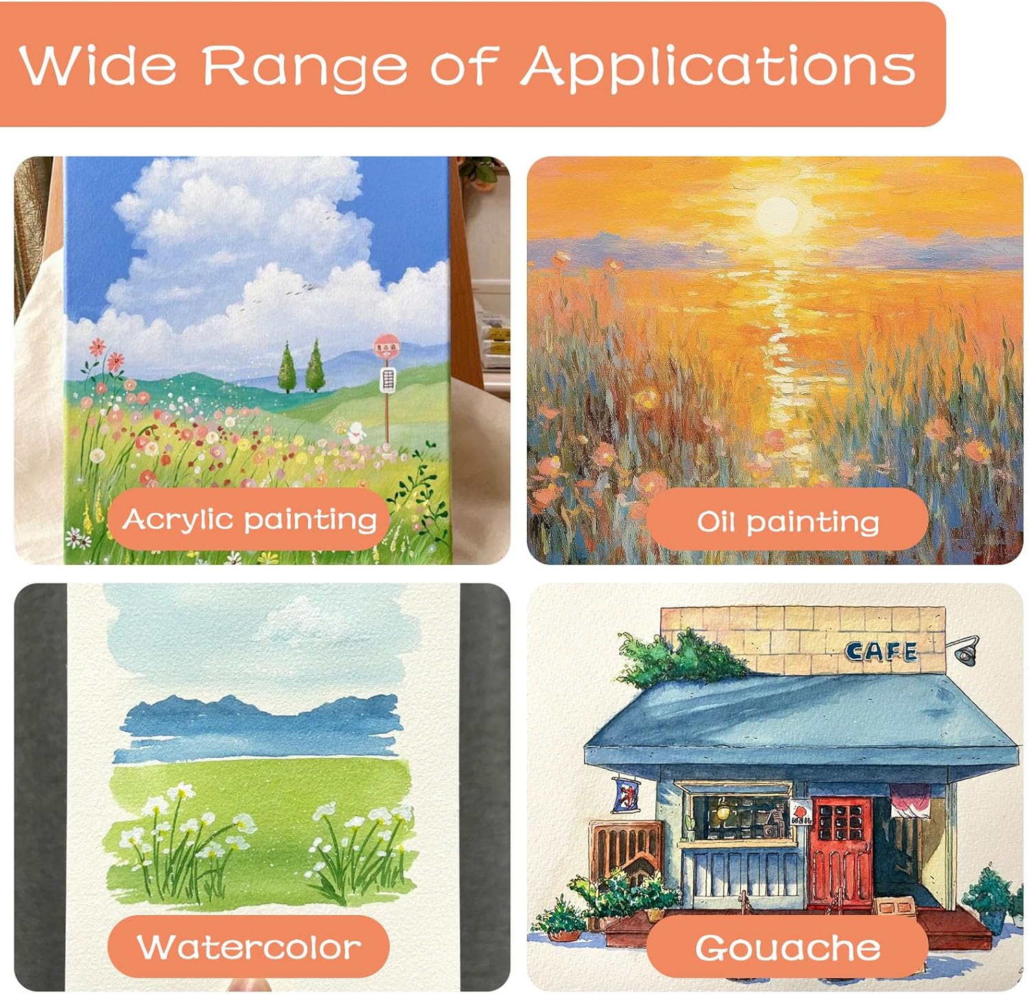 - Gloss Varnish for Acrylic Painting: Acrylic varnish can make the acrylic painting not yellowing, not wear and tear, aging-resistant, and maintain permanent color, so that your paintings are not eroded by the years