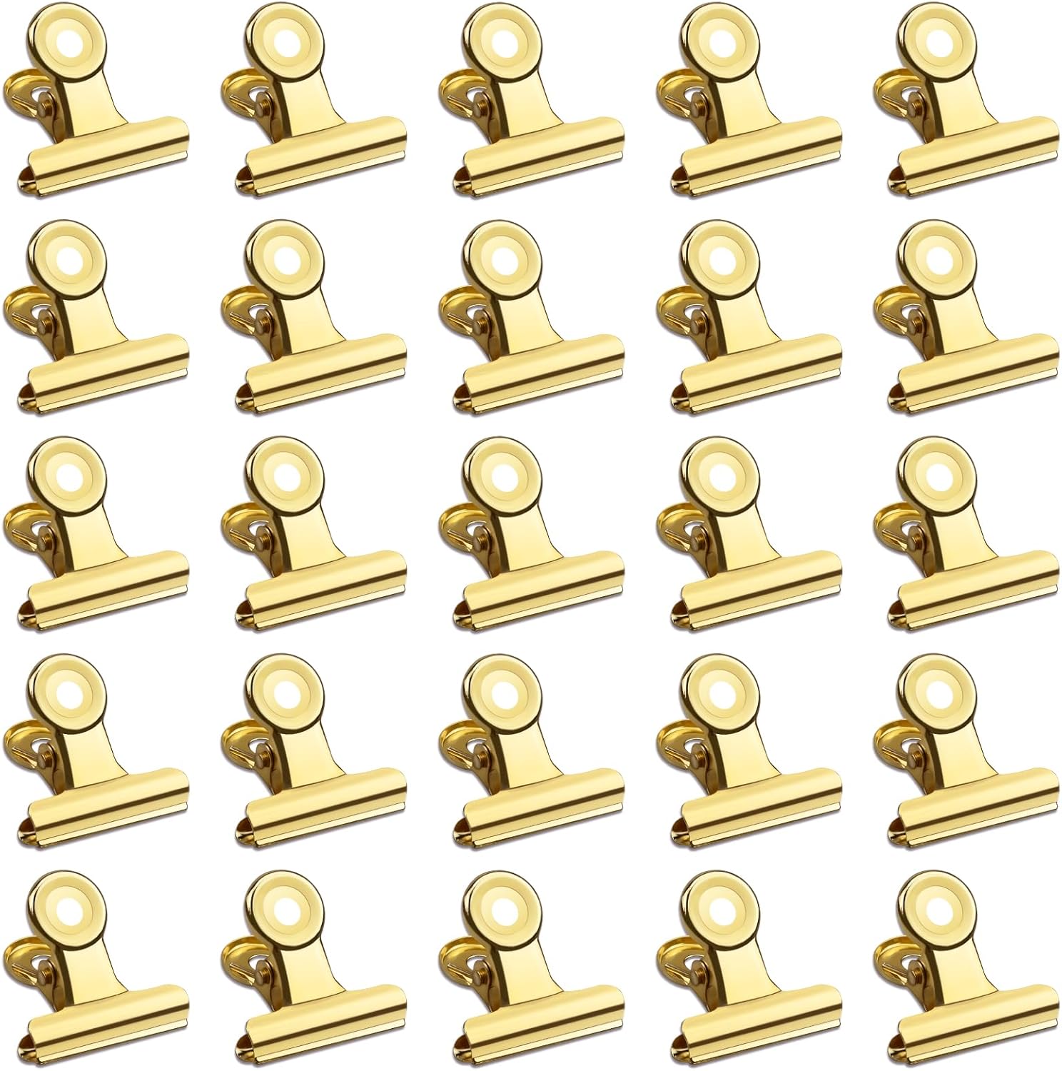 30 Pack Small Bull Clips 0.87 Inch Mini Metal Hinge Clips Binder Paper Hinge Clip for Office, Home, School, Shops, Gold, 22mm