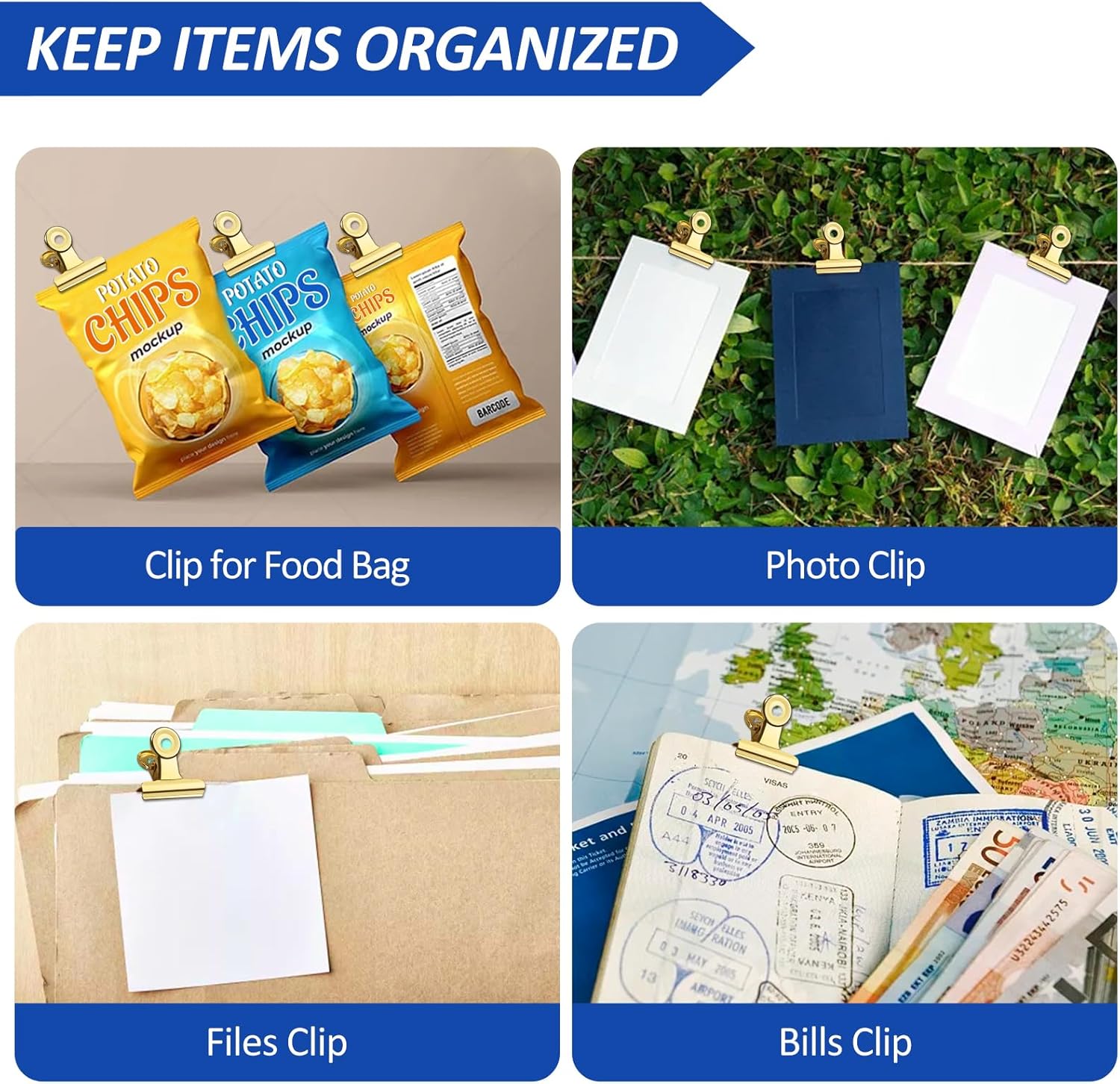 - Strong Grip & Tightness: Bulldog binder paper clips built-in high-elasticity spring to ensure a solid grip. Prevents your important documents from falling out. Protects your food from moisture and spoilage