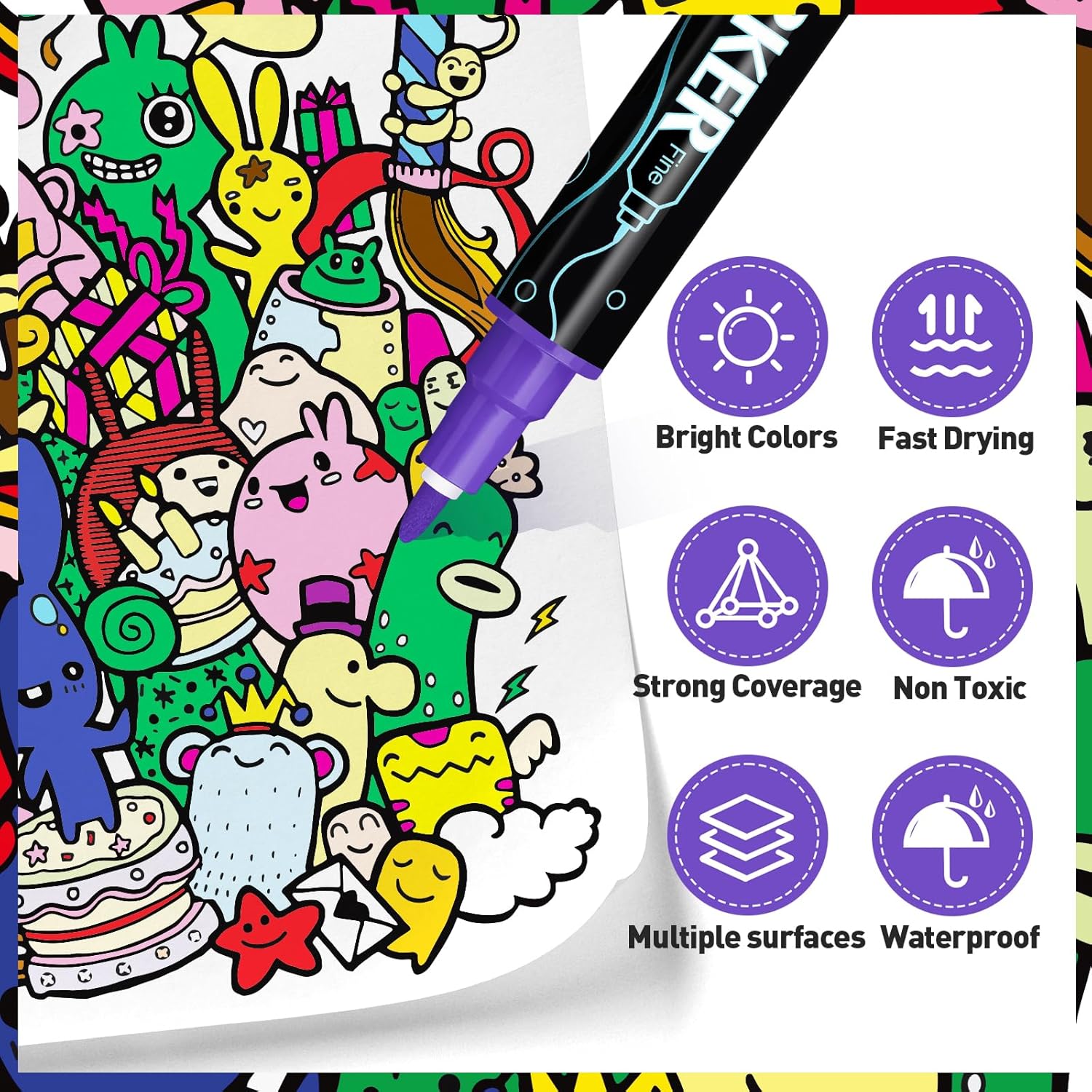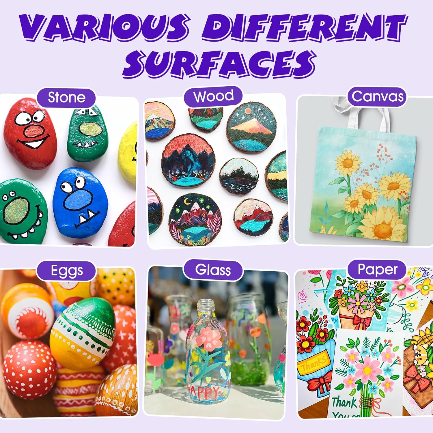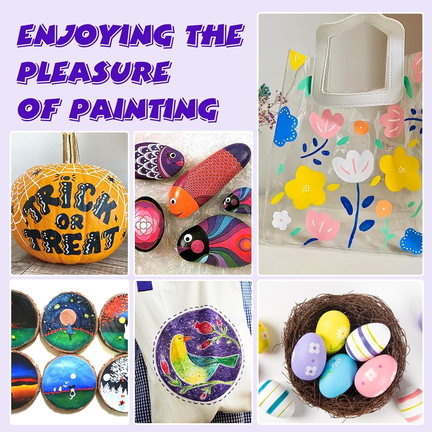 - 【Convenient to Use】Our paint pens with new design.You don't need to shake or press when using it,open the pen cap and you can start your creative journey.our acrylic pens are cotton nibs that it can be used directly.Our acrylic markers conforms to ASTM D-4236.Warm tip:To ensure the smoothness of the ink, please place the pen flat and cover it with a pen cap after use.