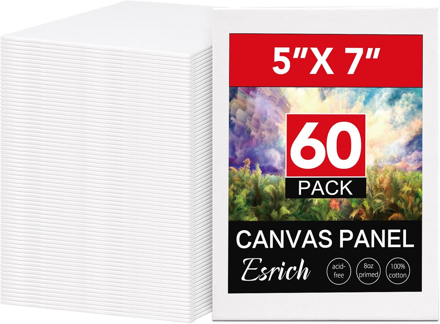 ESRICH 5x7 Small Canvases for Painting, 60 Pack Mini Canvas Boards for Painting Canvas Primed Acid Free Mini Blank Canvas Panels for Oil Paint,Watercolor,Acrylic Paint,Gouache&Tempera.
