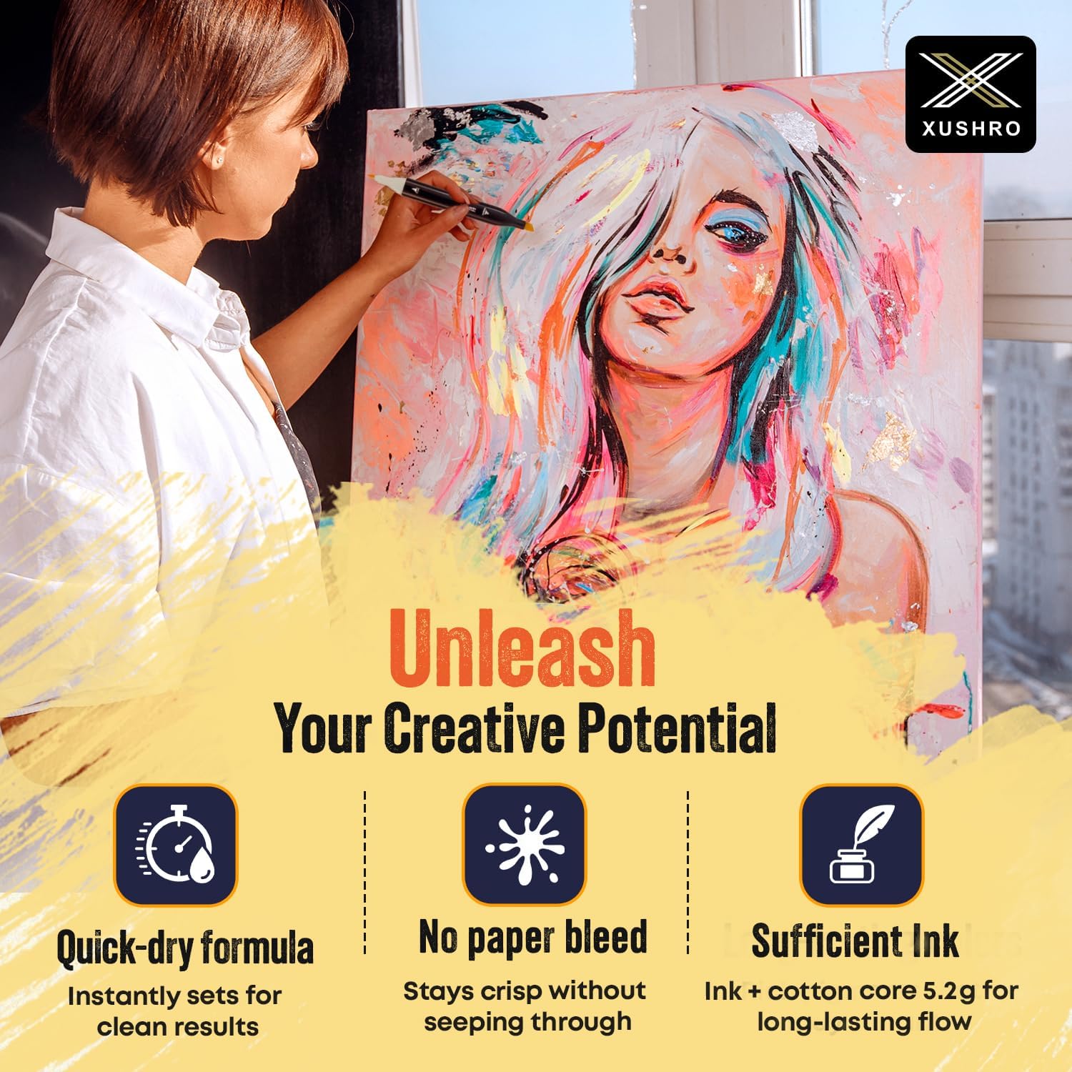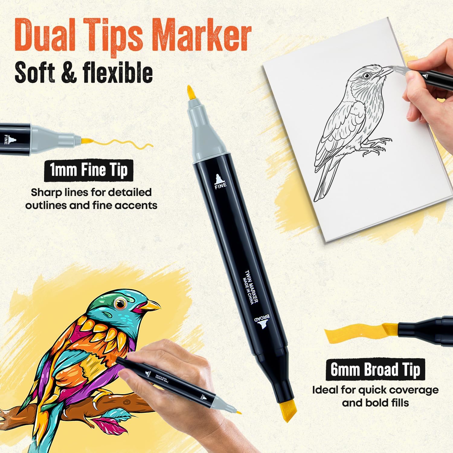 - INK THAT STAYS SHARP: Made with alcohol-based & quick-drying ink, these dual tip acrylic paint markers provide vibrant, long-lasting color without bleeding through paper. Enjoy clean, smudge-free artwork on every project, from adult coloring to sketching