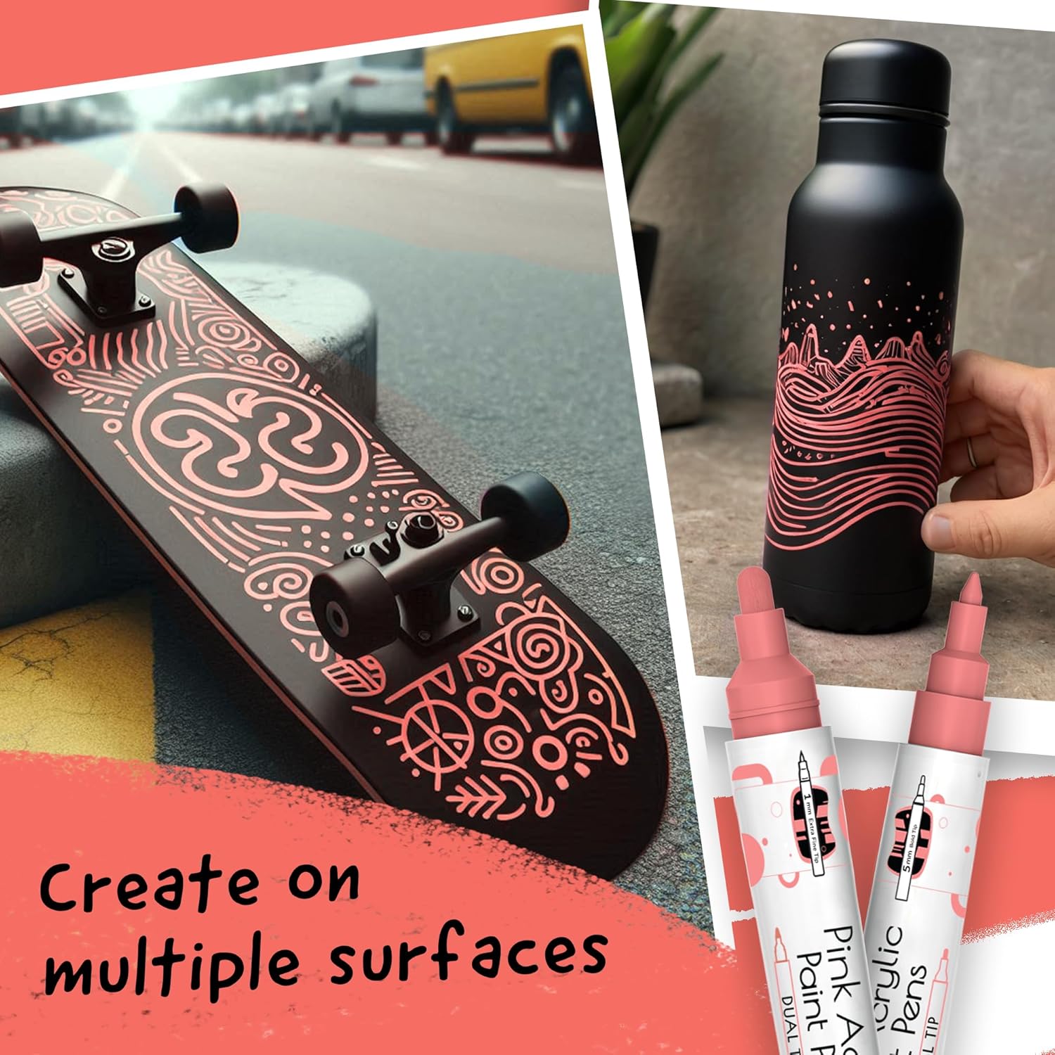 - Pink Paint Pens Metallic - Highly pigmented, Quick to dry & used as paint markers for canvas, paint markers for wood, or as glass paint markers, rock painting pens, on wine glasses & ceramic paint pen (dishwasher safe ink)
